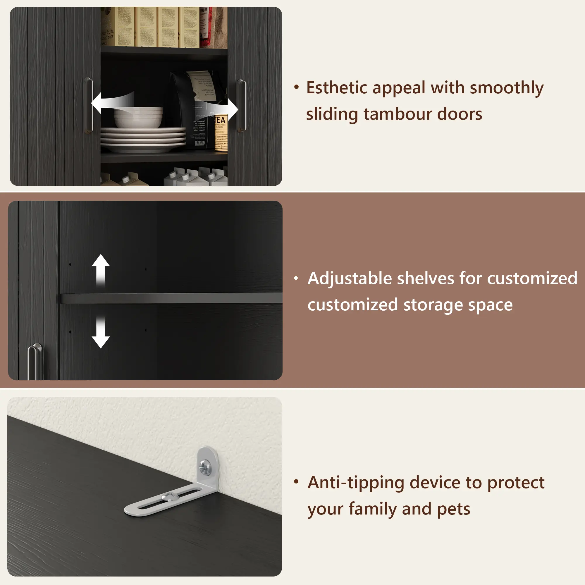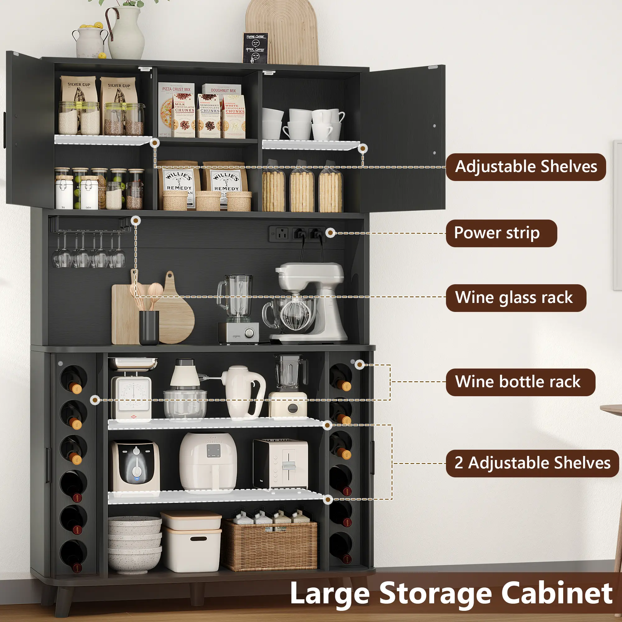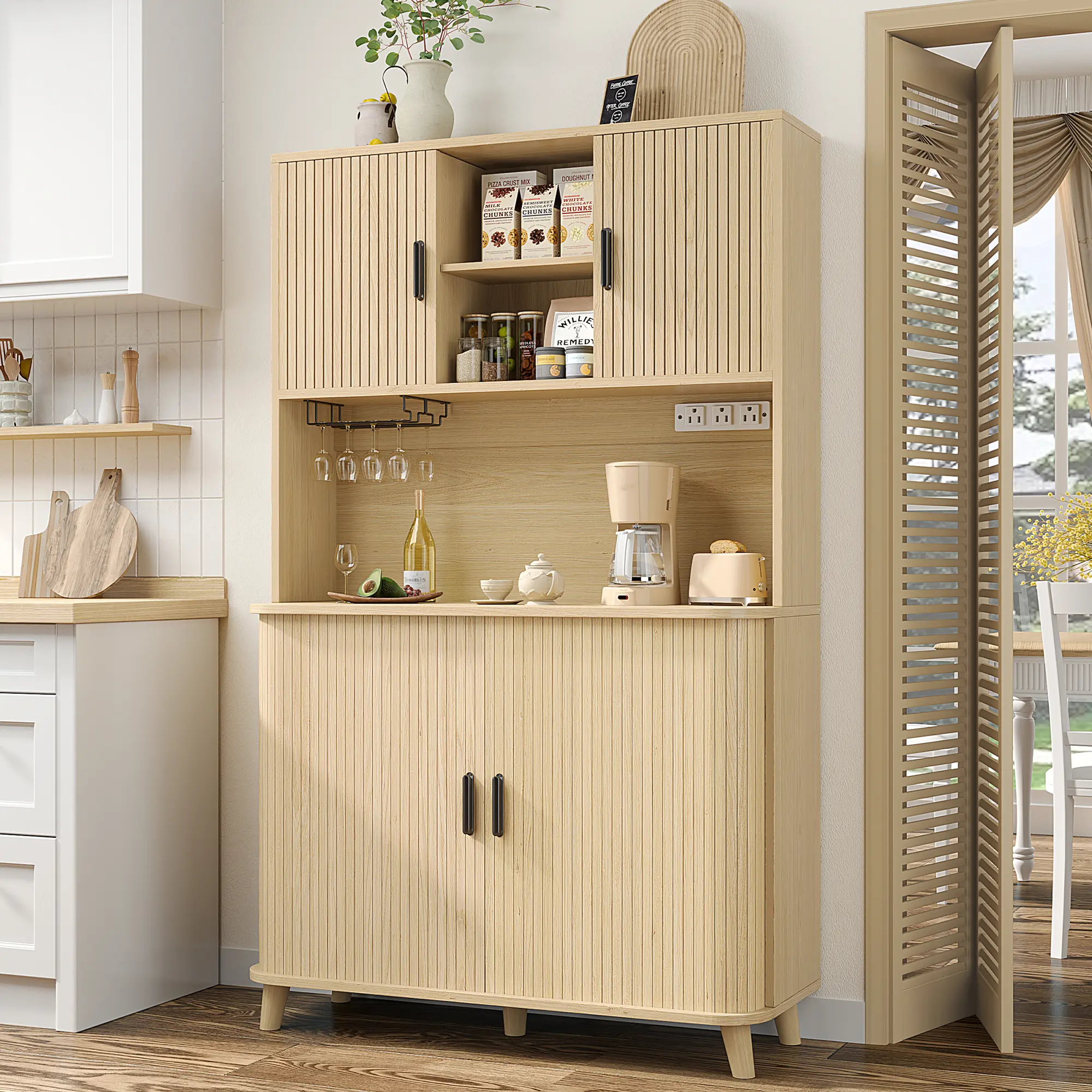 【Multi-Purpose Cabinet】: Works as a kitchen pantry, hutch cabinet, coffee bar, buffet sideboard, or wine cabinet for dining rooms and living spaces.