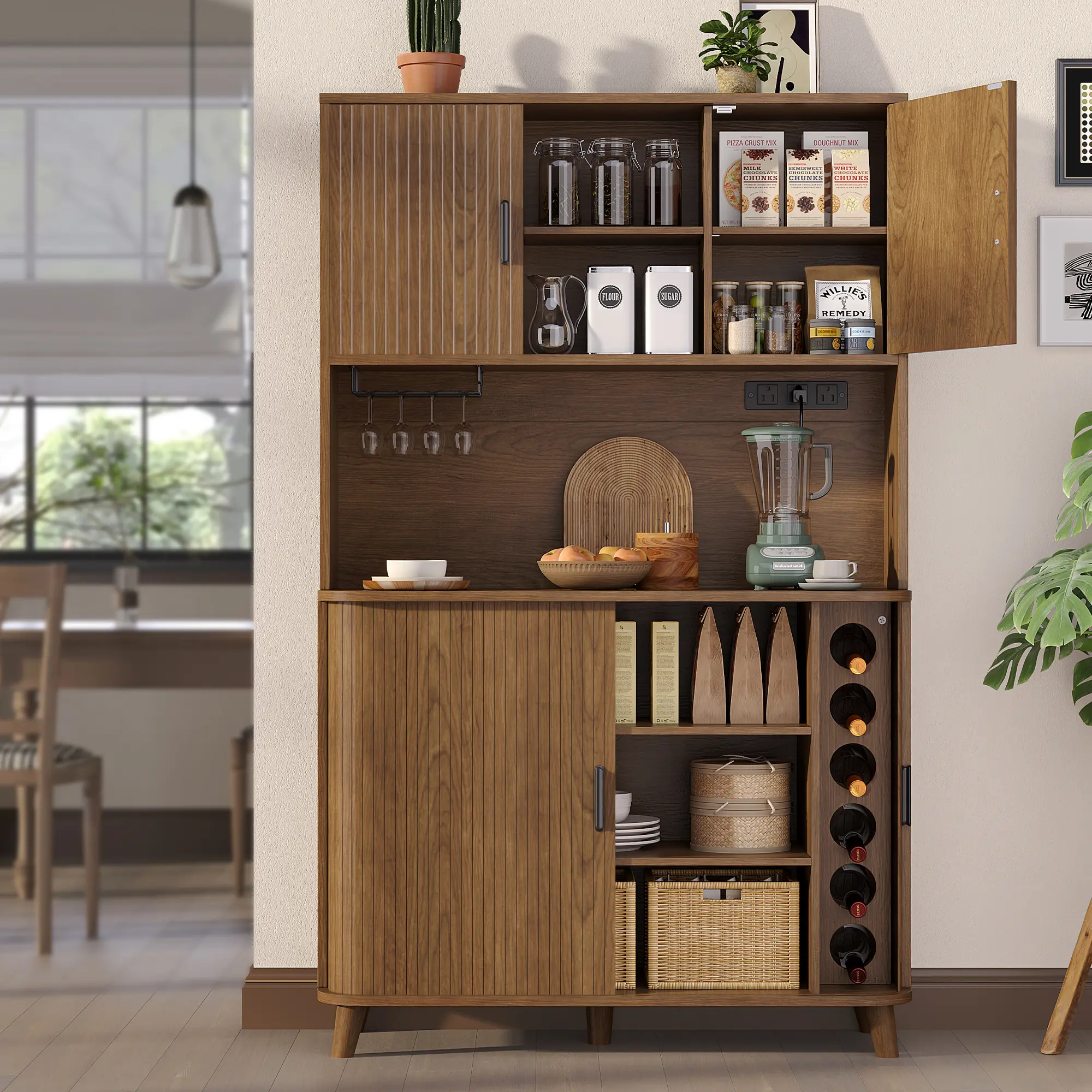 Items included: pantry cabinet, power outlet, wine rack, wine glass rack
