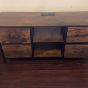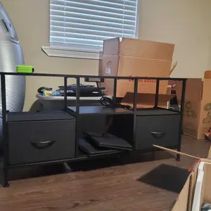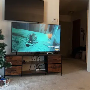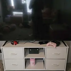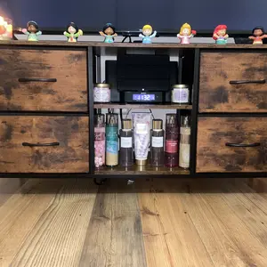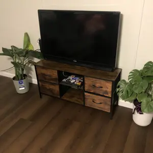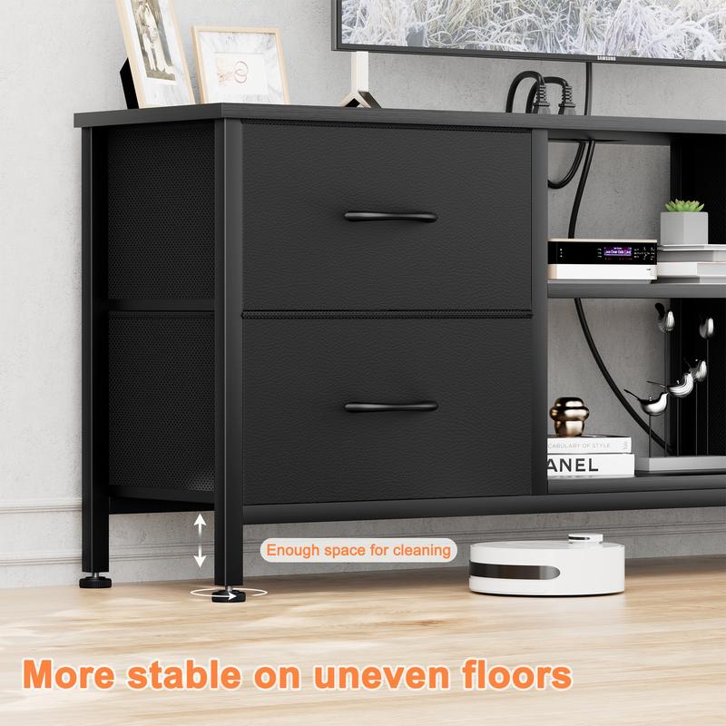 The side frame of TV stand is made of sturdy steel frame, which can better support the whole cabinet;4 adjustable plastic feet stabilize the TV stand; You can safely on this dresser TV stand You can safely place your printer, lamp, plants and tall TV stand on this dresser TV stand.