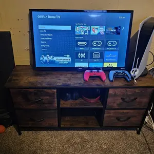 Comes with its own power outlet, providing multiple charging options including: 2 AC Outlets (125V/12A), 2 USB Ports (5V/2A). The 5-Foot Power Cord is long enough for you to connect to a power source. Ample storage space provides plenty of room for your DVD player, cable box, gaming equipment or collectible display.
