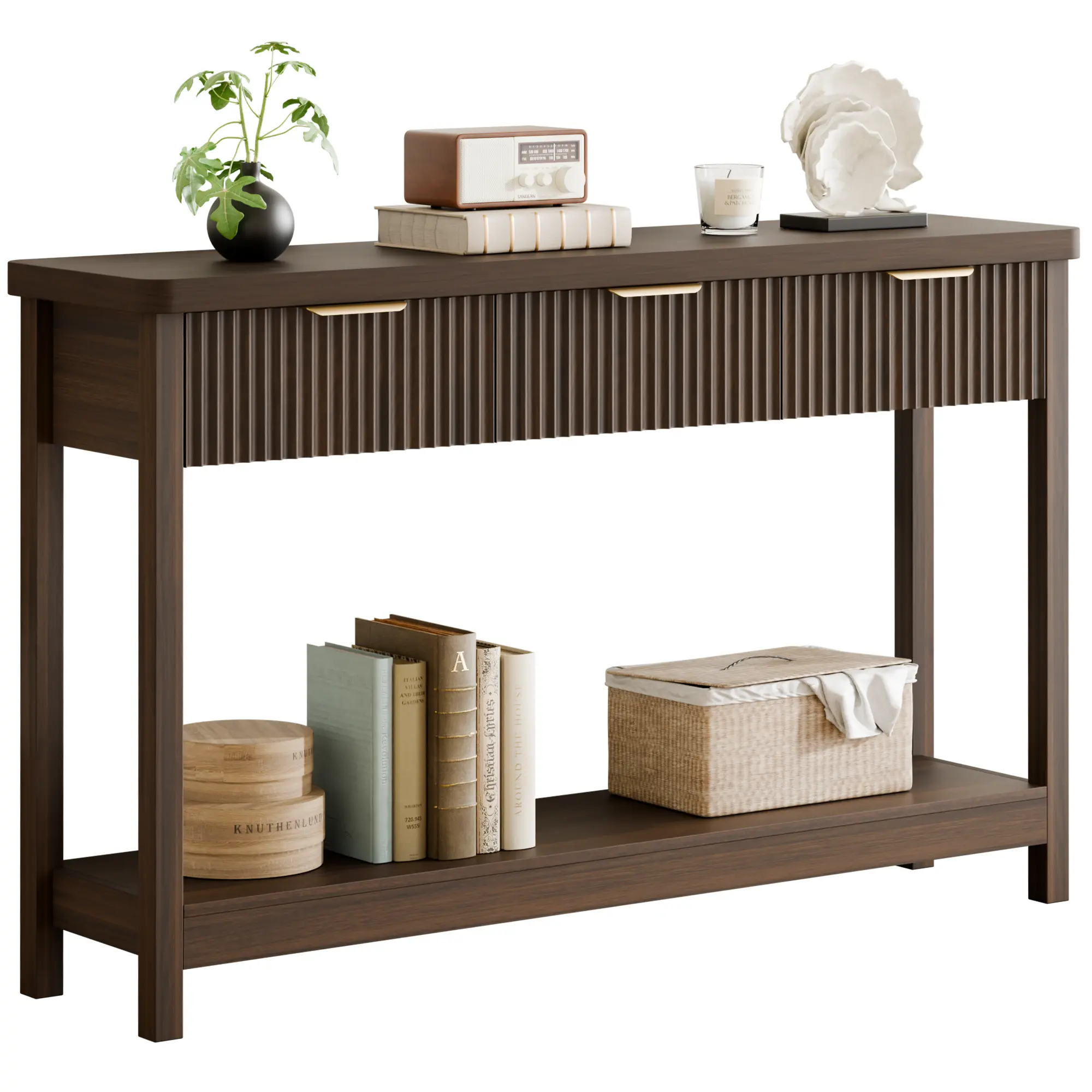 This modern fluted console table is designed to store daily essentials, stay stable, and fit beautifully into narrow spaces.
