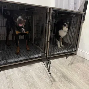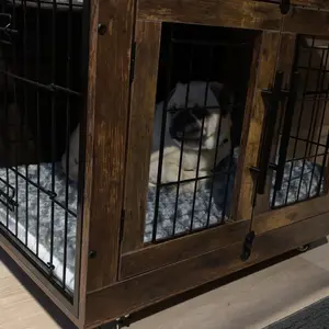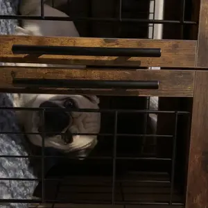 【Convenient Double Door Design】Designed for active pets, this furniture-style kennel features two entry points (front + side door), allowing your dog to move freely and comfortably. The side door is fully adjustable, with a reversible hinge that lets you choose left or right opening—perfect for adapting to different room layouts and interior styles.