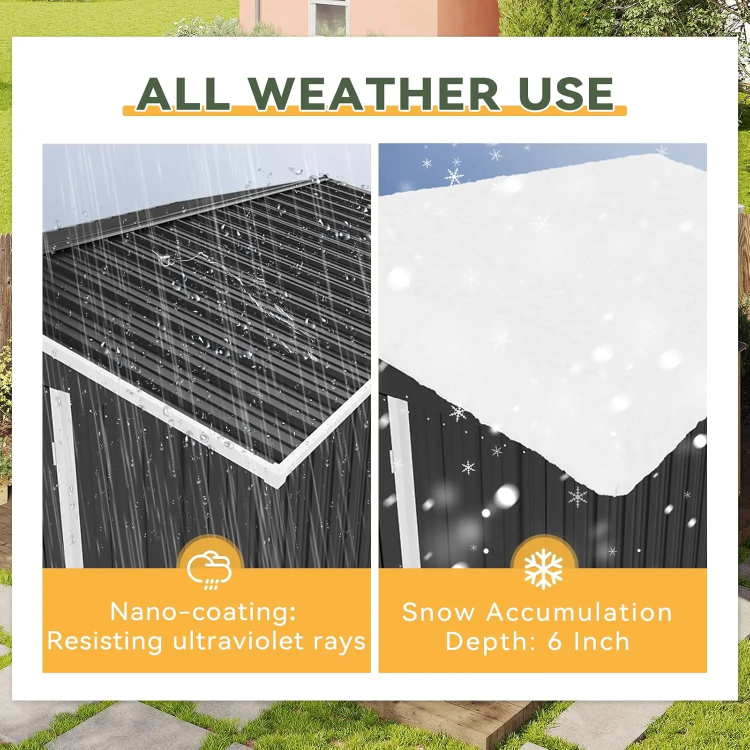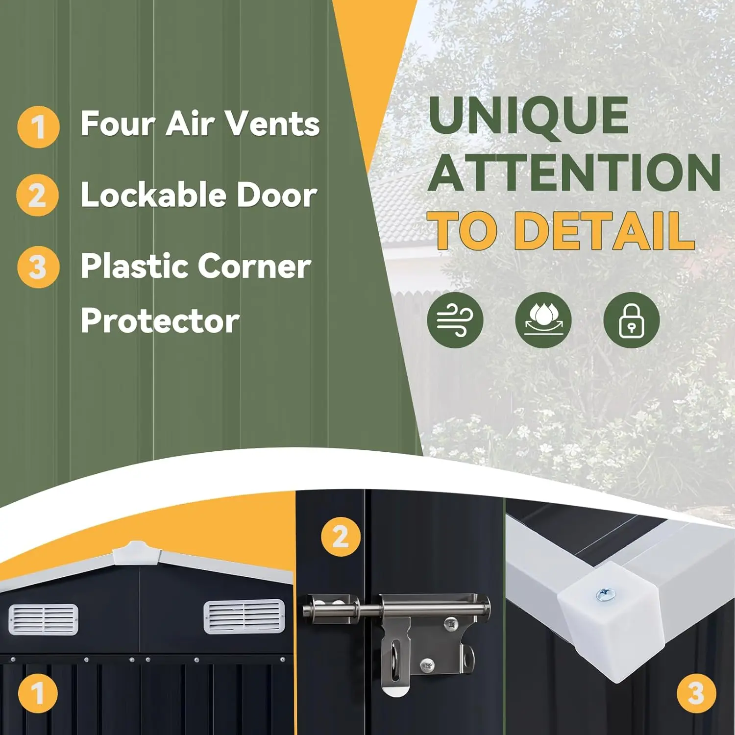·Engineered Design for Protection & Security: Features a practical, water-shedding sloped roof that prevents pooling and leaks while maximizing usable interior height. Integrated ventilation ensures crucial airflow to reduce moisture buildup and protect stored items. The sturdy, lockable door provides convenient access and essential security for your valuables, giving you peace of mind.