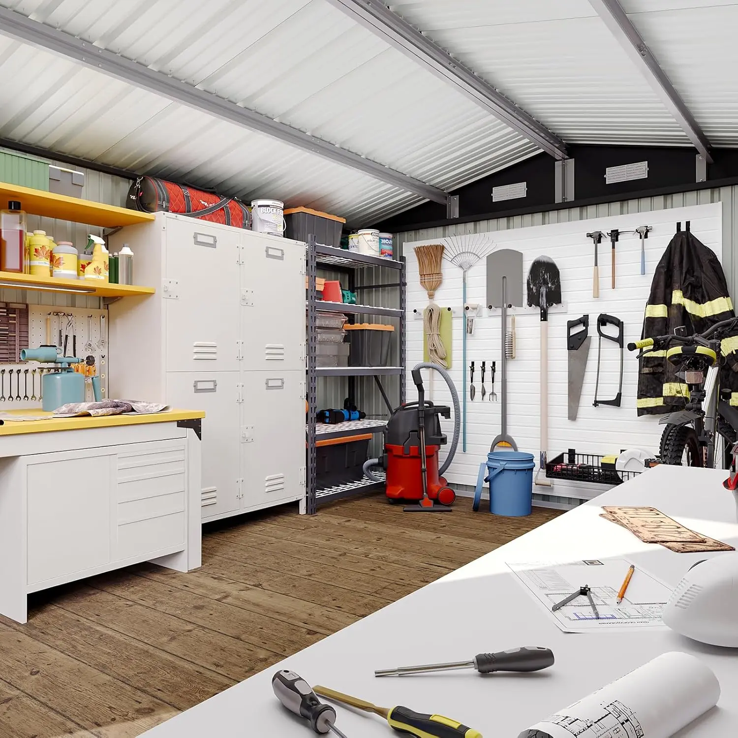 ·Ample Spaciousness & Smart Organization: Generously sized to effortlessly store shovels, rakes, bicycles, bulky lawnmowers, children's toys, sports equipment, and all your outdoor essentials. Features optional internal storage racks (not included) to maximize vertical space and keep your belongings neatly organized and instantly accessible.