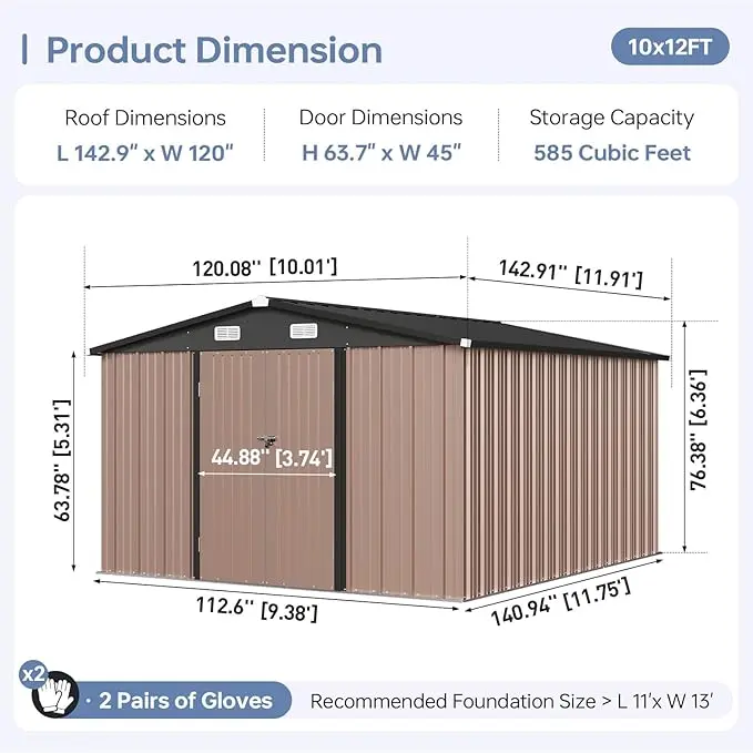 ·Storage Capacity: Generously sized for shovels, rakes, bicycles, lawnmowers, toys, sports equipment, and outdoor essentials.