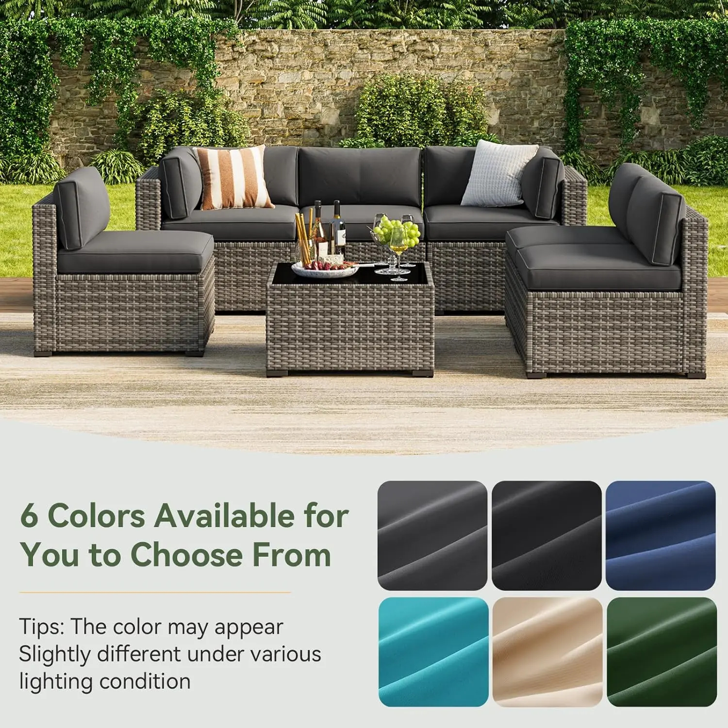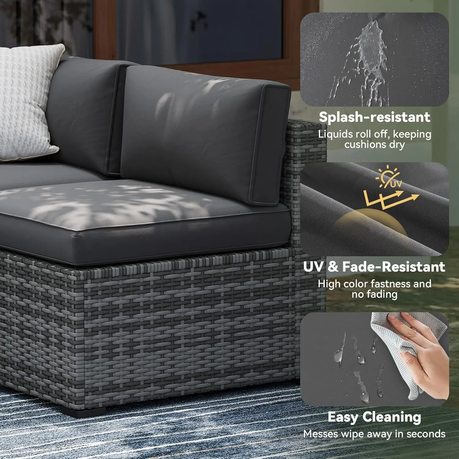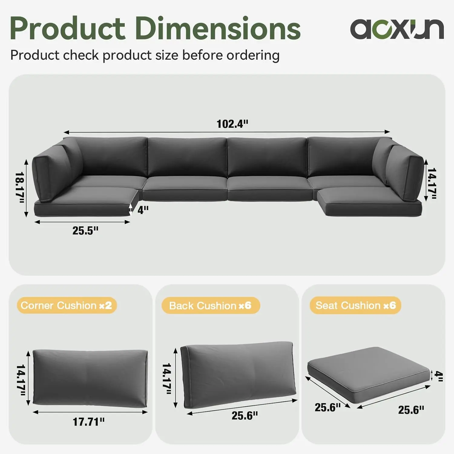 Includes: 2 corner cushions (17.71″×14.17″×8″), 6 back cushions (25.6″×14.17″×8″), and 6 seat cushions (25.6″×25.6″×4″). Ideal for patio conversation sets, poolside lounging, and outdoor entertaining.