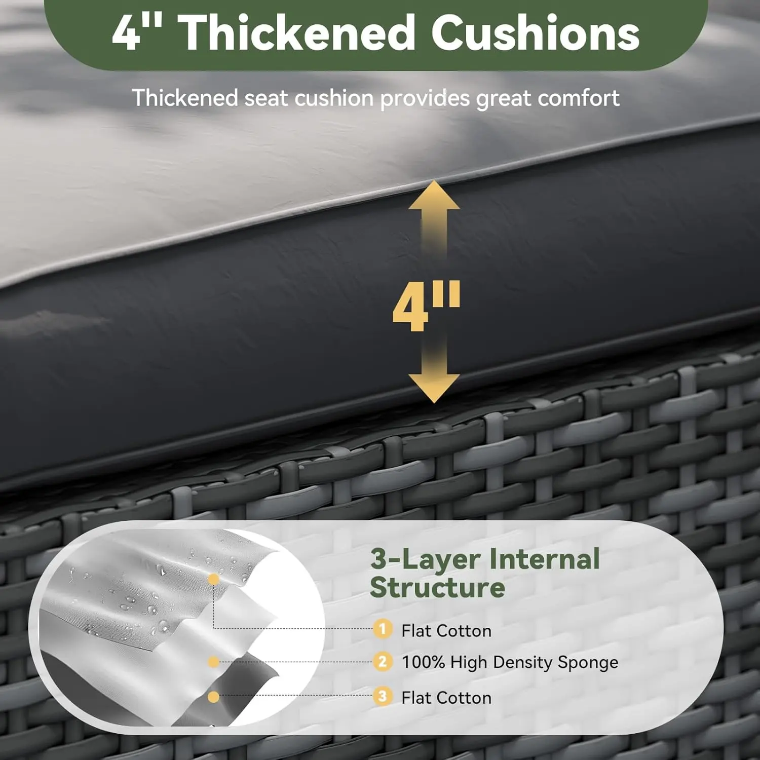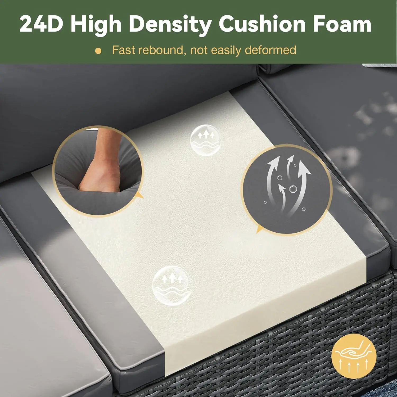 Seat cushions use 24D high-resilience foam for firm support. Back cushions are filled with soft PP cotton—like resting on a cloud during long outdoor stays.