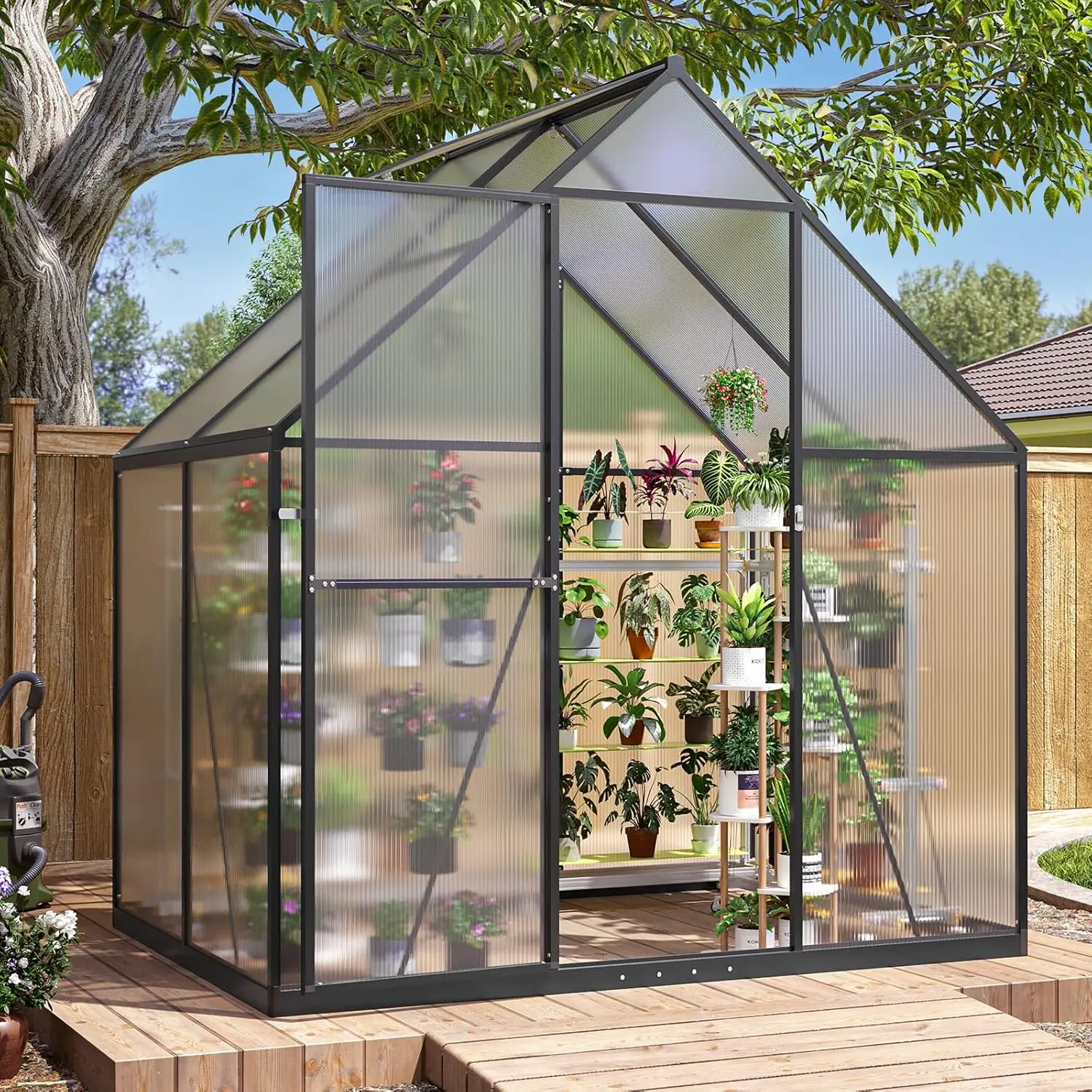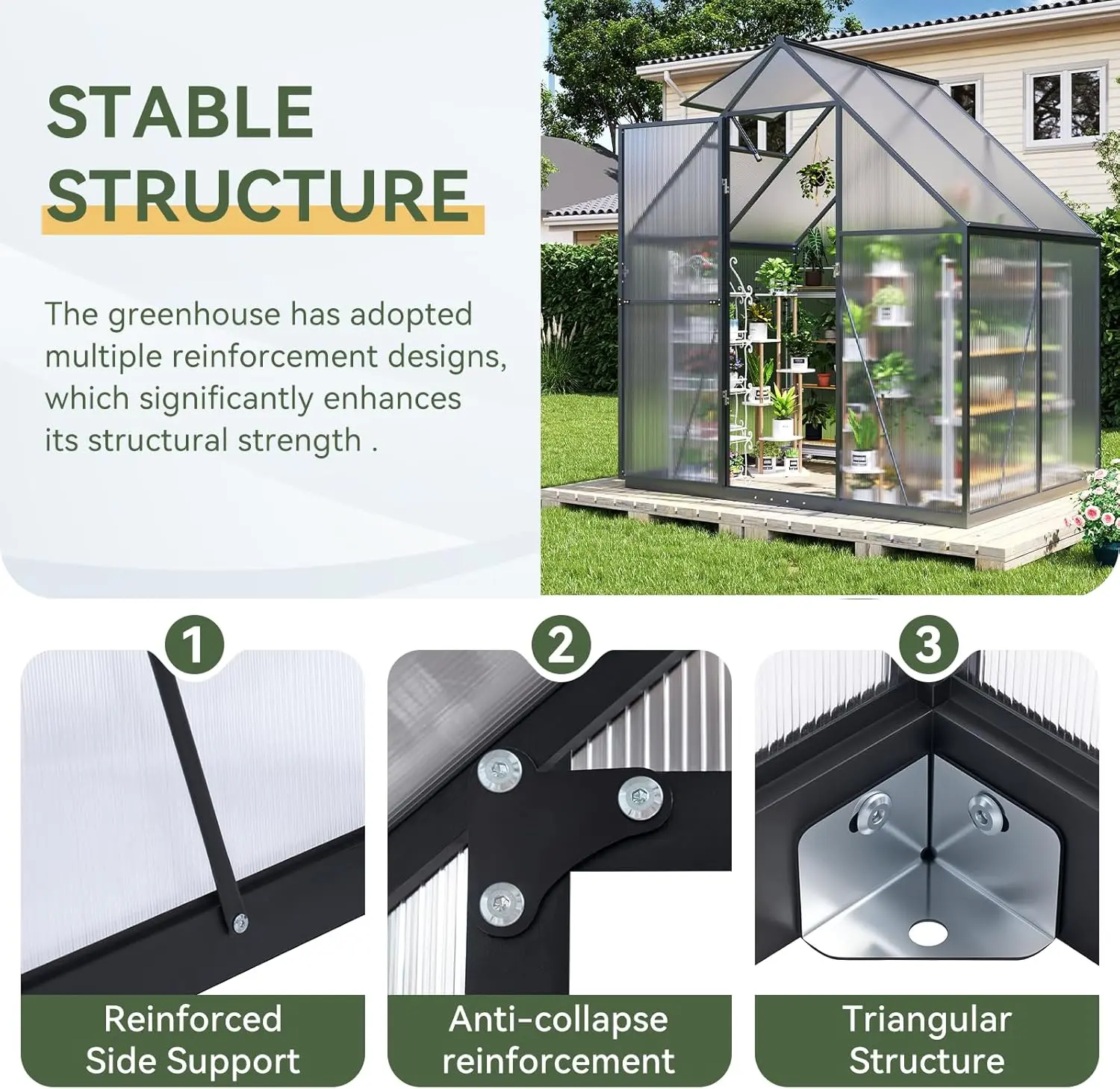 ·The greenhouse features a high-quality aluminum alloy frame, combined with high-strength polycarbonate panels. 🌿