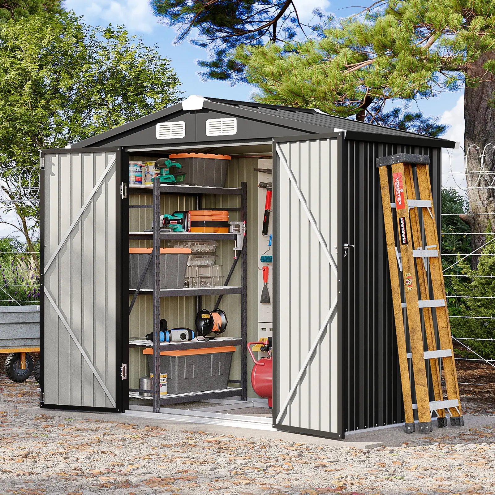 ·Ideal for Outdoor Storage: This Aoxun Outdoor Storage Shed is perfect for storing garden tools. It features a sloping roof and a lockable door, ensuring your items are secure. 🌿