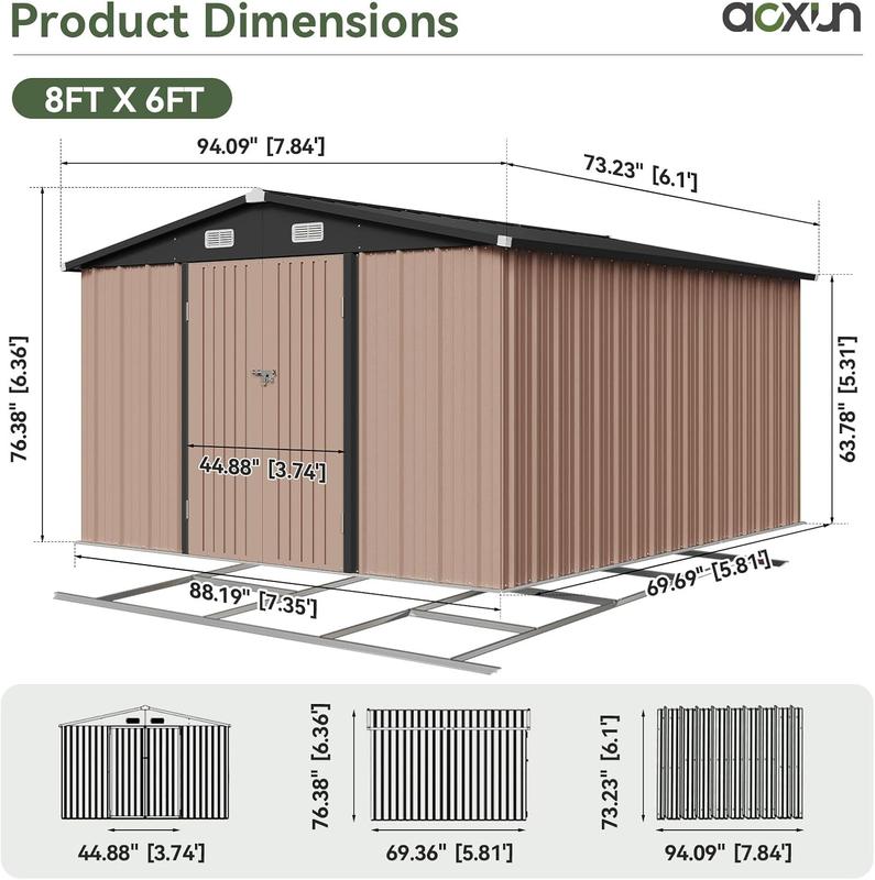 ·Dimensions: The storage shed measures 6' x 8', ideal for yard, patio, or backyard use. 📏