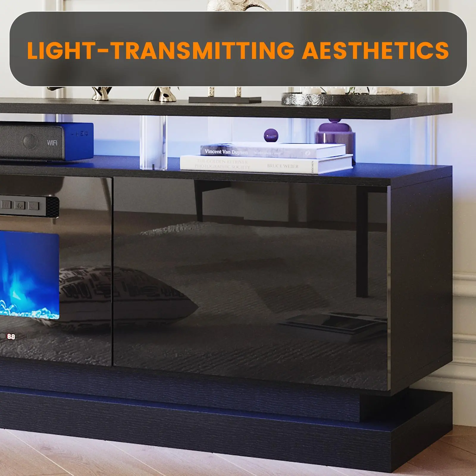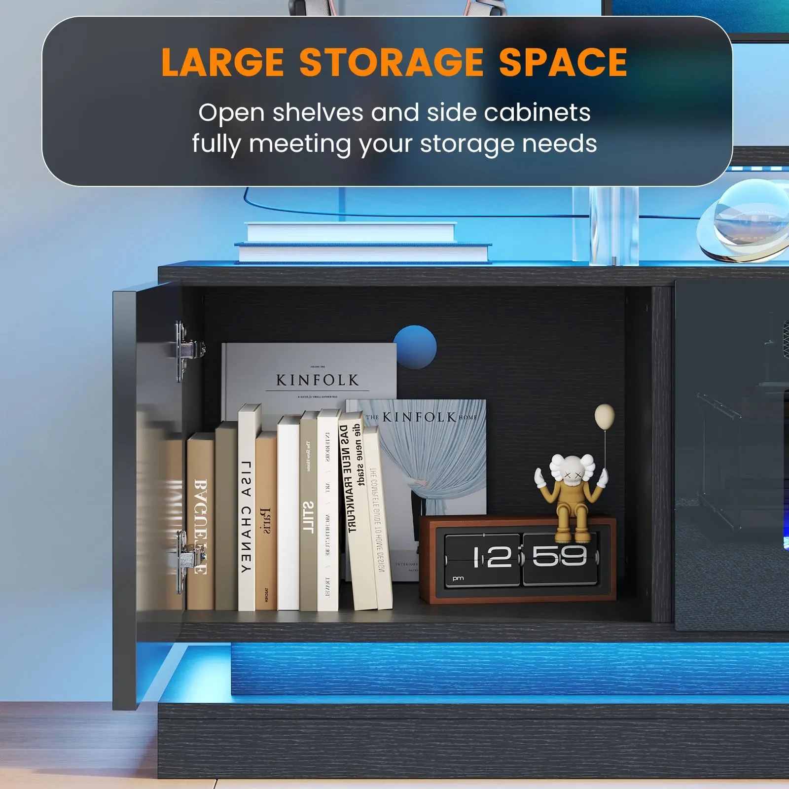 【TV STAND ONLY】ONEINMILT 70 Inch Modern TV Stand with Storage Sleek Black Media Console for Living Room & Bedroom LED Lit Fits Up to 70 TVs