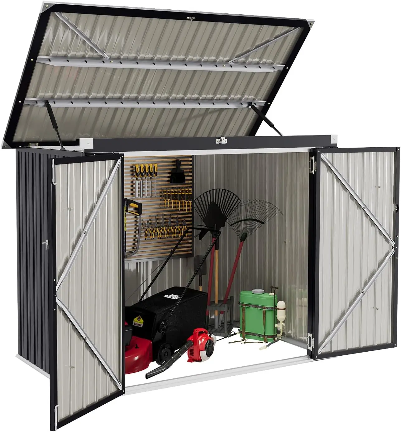 ·Refined Material and Solid Structure: The storage shed, constructed with galvanized steel and coated in black powder, exhibits exceptional sturdiness and durability for prolonged usage. The superior structural design guarantees the top's exceptional load-bearing capacity, enabling it to withstand winds of up to six levels