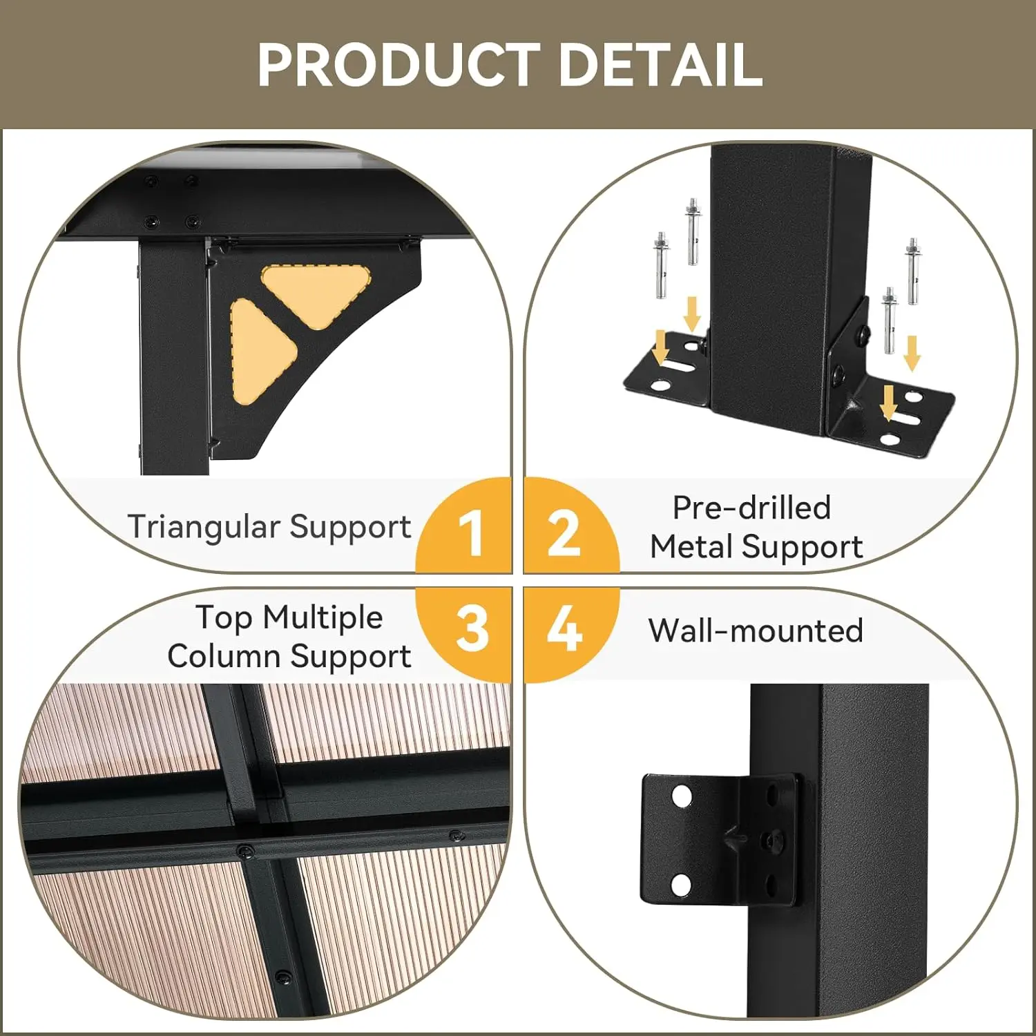 • Large Wall-Mounted Heavy Duty Awnings: Boasting a distinctive design infused with modern charm, this sloped-roof pergola enhances the visual appeal of any garden, courtyard, or outdoor space. The angled roof efficiently directs rainwater away, eliminating any concerns of water pooling, ensuring a dry and worry-free environment. 🌞