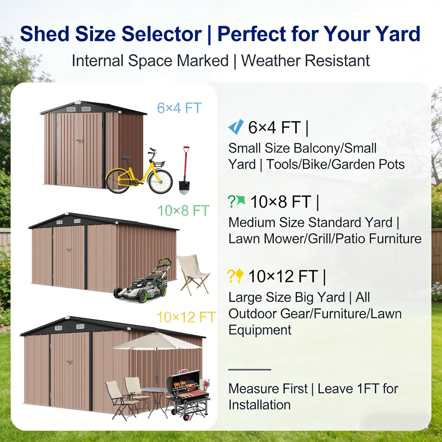 ·Offers ample space for snow blowers, shovels, bicycles, and toy cars.