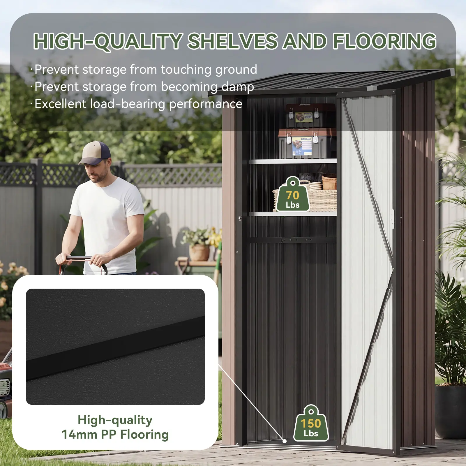 ·Includes Adjustable Shelves & Floor Panel: Comes equipped with two adjustable shelves for customizable organization of items of various heights. Also includes a 14mm thick polypropylene (PP) floor panel—a sturdy, moisture-resistant base that keeps items elevated off damp ground, suitable for lawn, deck, or concrete surfaces.