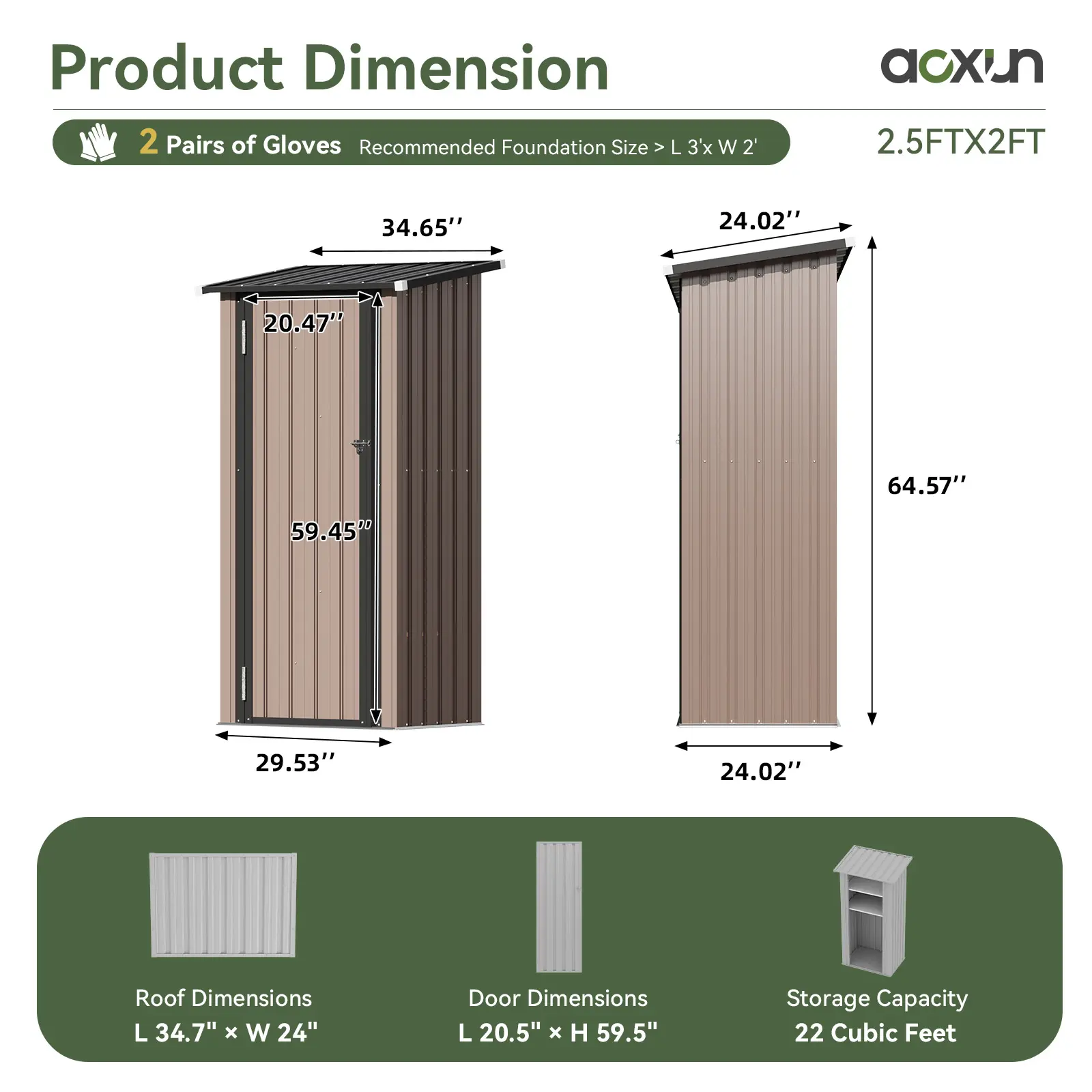 ·Space-Efficient Tall Design: This 3x3 FT shed features a vertical layout measuring 34.65"W x 64.57"H x 24.02"D, maximizing storage capacity while keeping a minimal footprint. Perfect for storing long-handled tools, gardening supplies, patio cushions, or kids' outdoor toys—an ideal space-saving solution for small yards, patios, or garden corners.