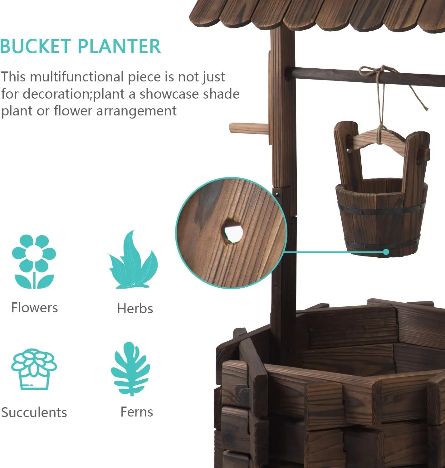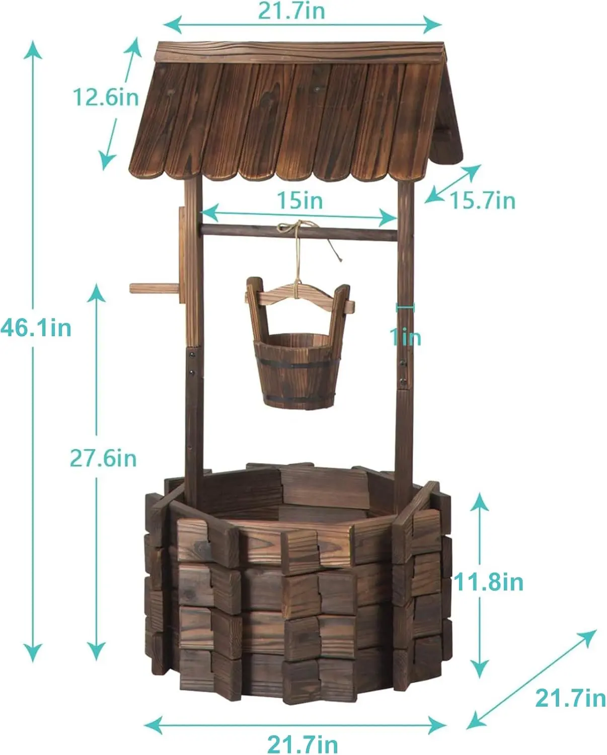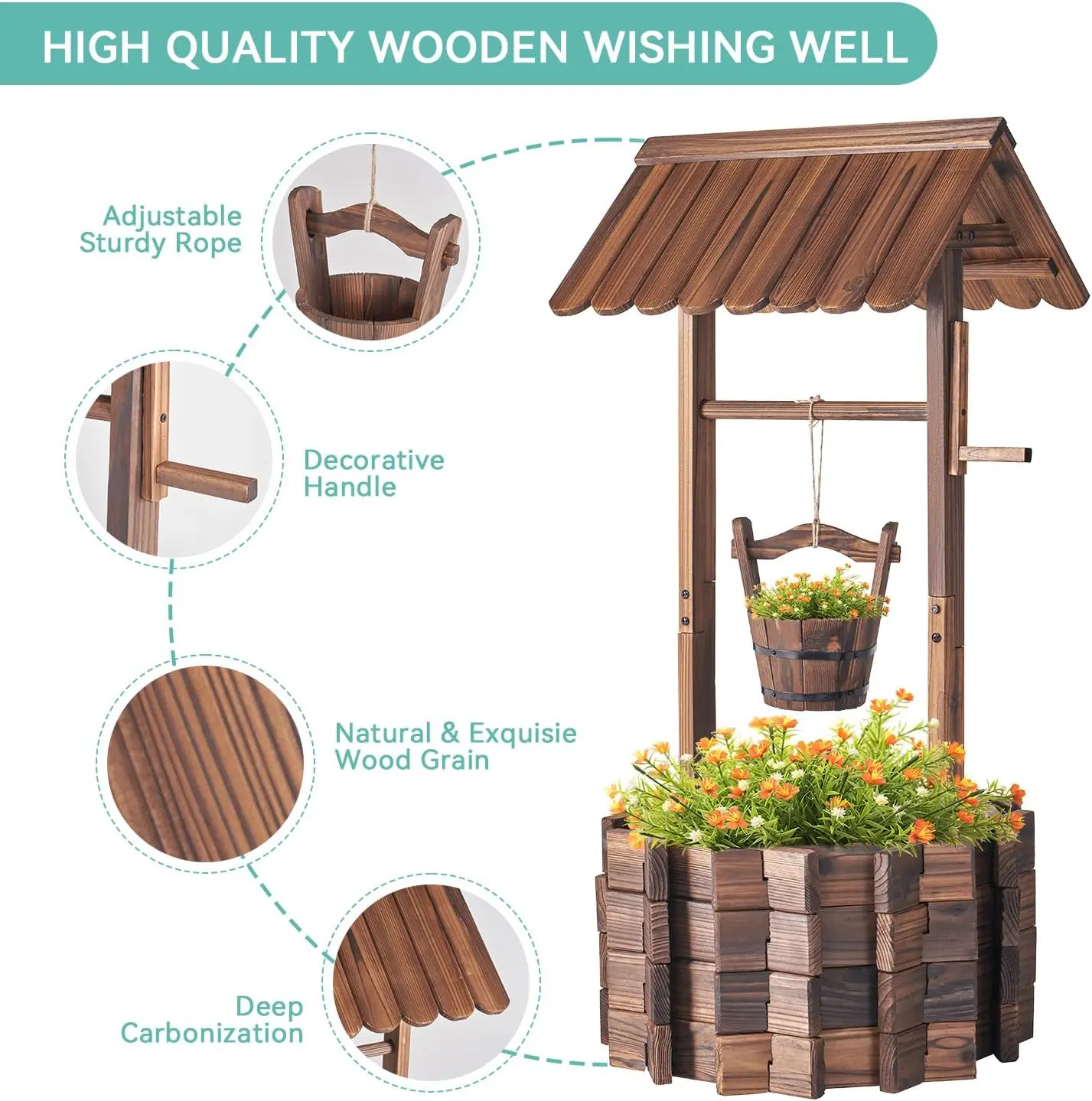 ·Good Material: Our wishing well flowerpots is made of high-quality fir, after being stamped and carbonized, it is strong and durable