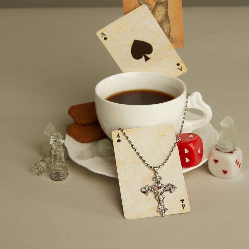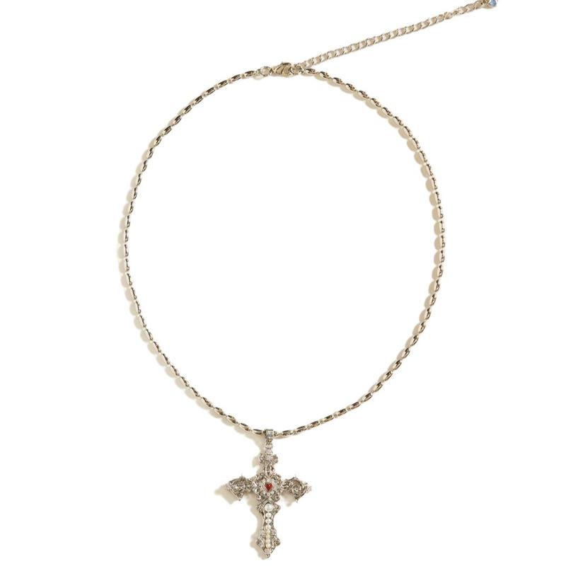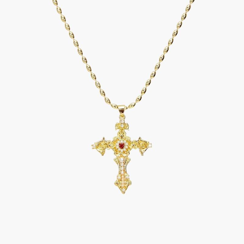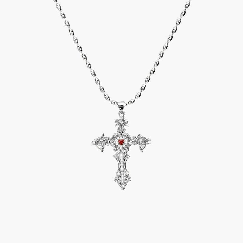 en route Aphrodite’s Song Necklace in Silver, Featuring A Heart-accented Cross Pendant, A Bold Statement Piece, Ideal for Daily Wear & Layered Looks