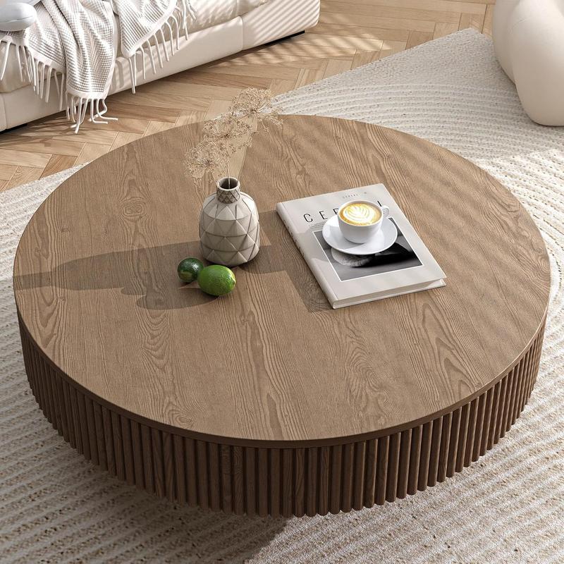 ·MODERN COFFEE TABLE: The intricate fluted gear design adorning the small coffee table's side exudes a unique and captivating charm, infusing your space with a touch of modern and stylish elegance. The soft, solid color effortlessly harmonizes with diverse interior decor styles, allowing you to craft your dream home ambiance with ease.