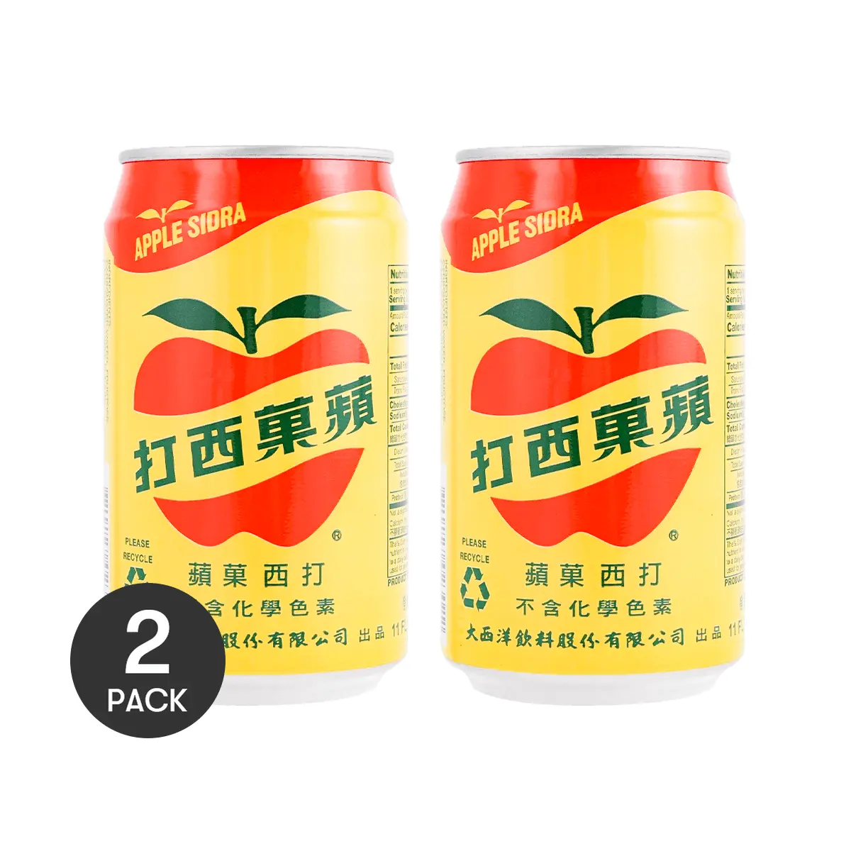2 Pack Oceanic Beverages Taiwan Apple Cider Sparkling Drink, 330ml Cans - Natural Flavor, No Artificial Colors