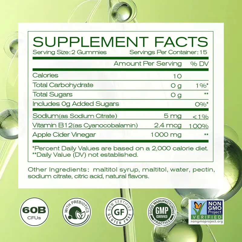 Treat yourself to these organic apple-flavored gummies that offer metabolism support, detox benefits, and a tasty way to increase your energy levels throughout the day. FDA Registration No. 16380389612.