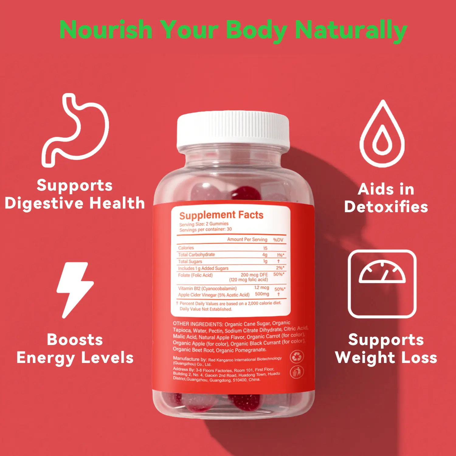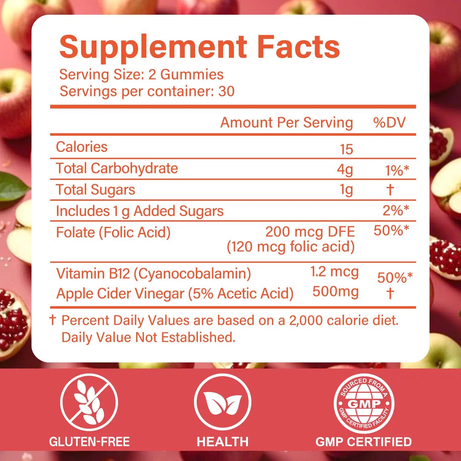 Apple Cider Vinegar Gummies Formulated to Support Normal Energy Levels & Gut Health - Supports Digestion, Detox & Cleansing