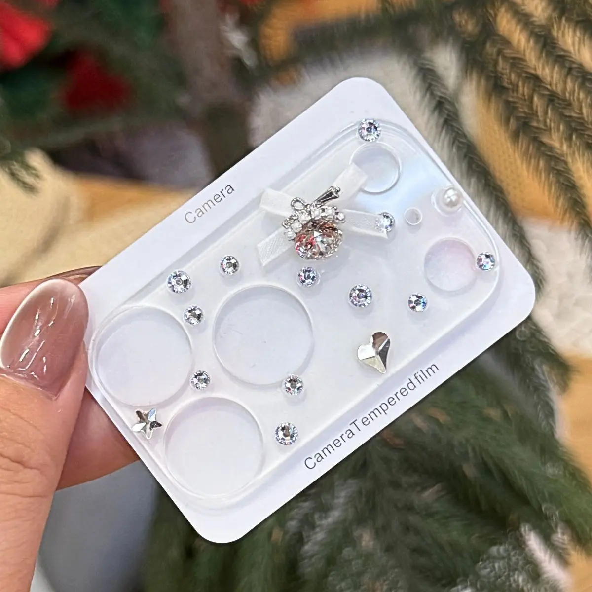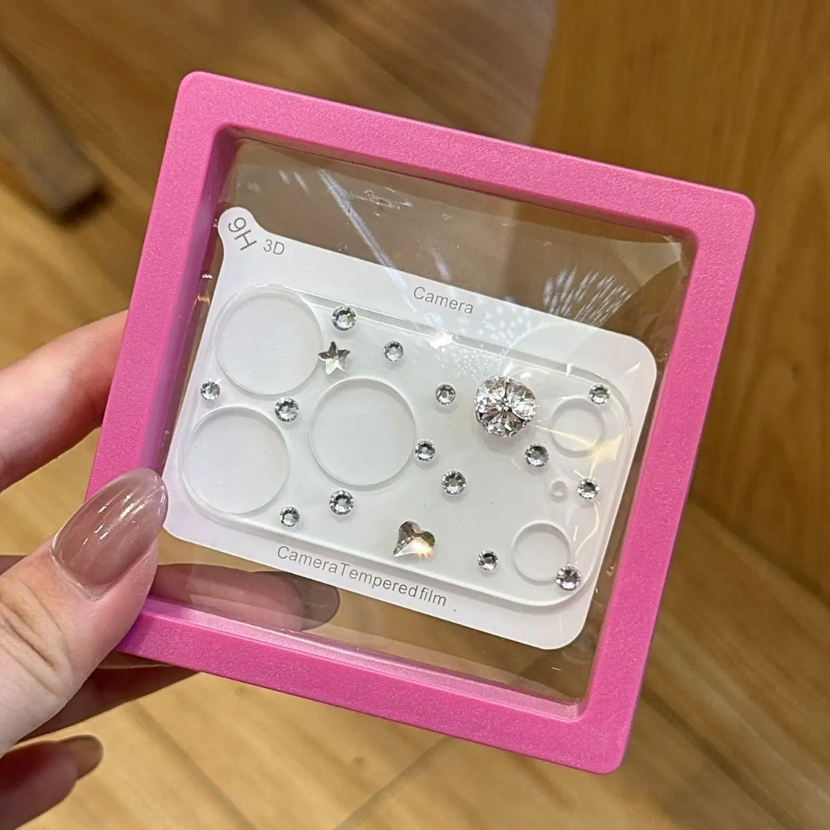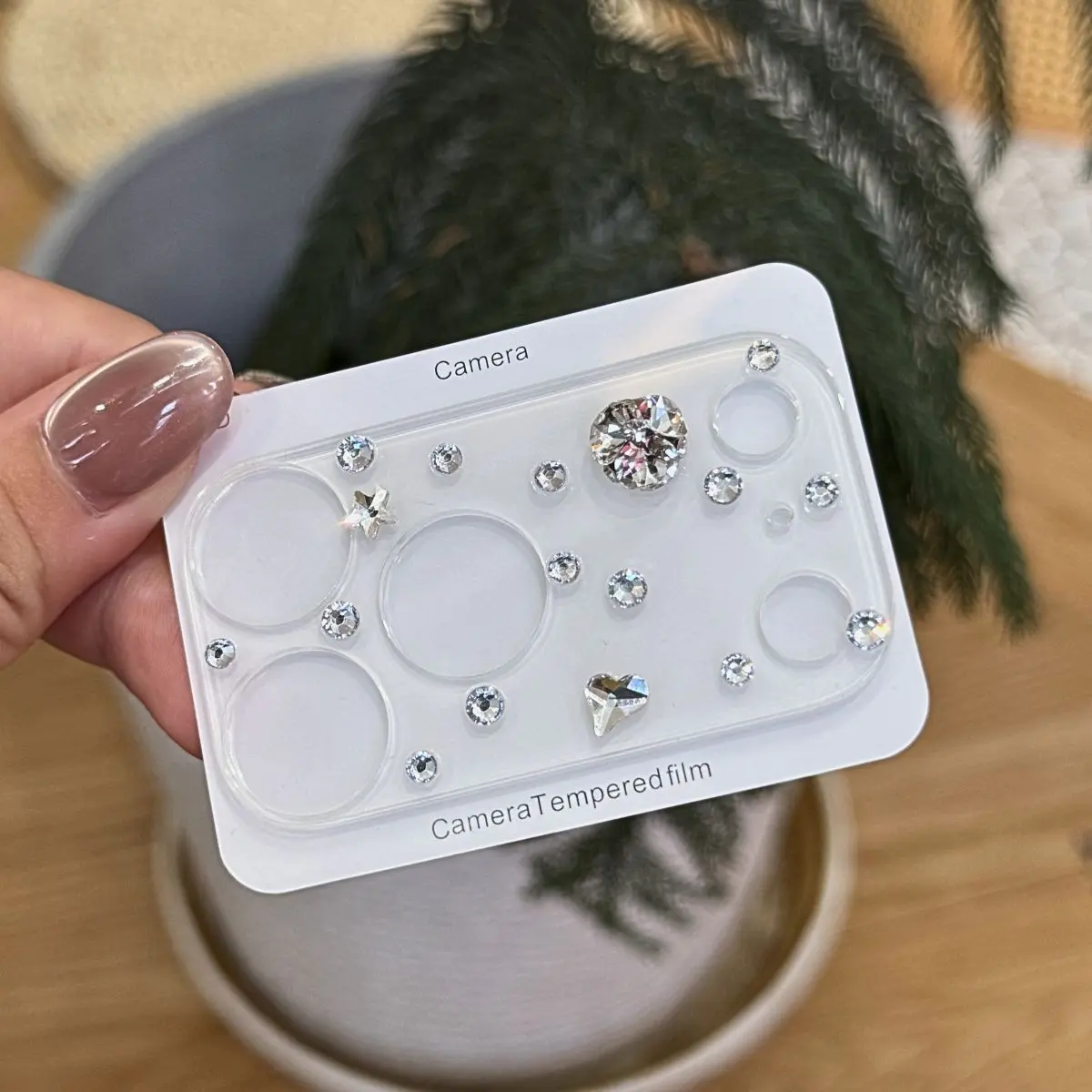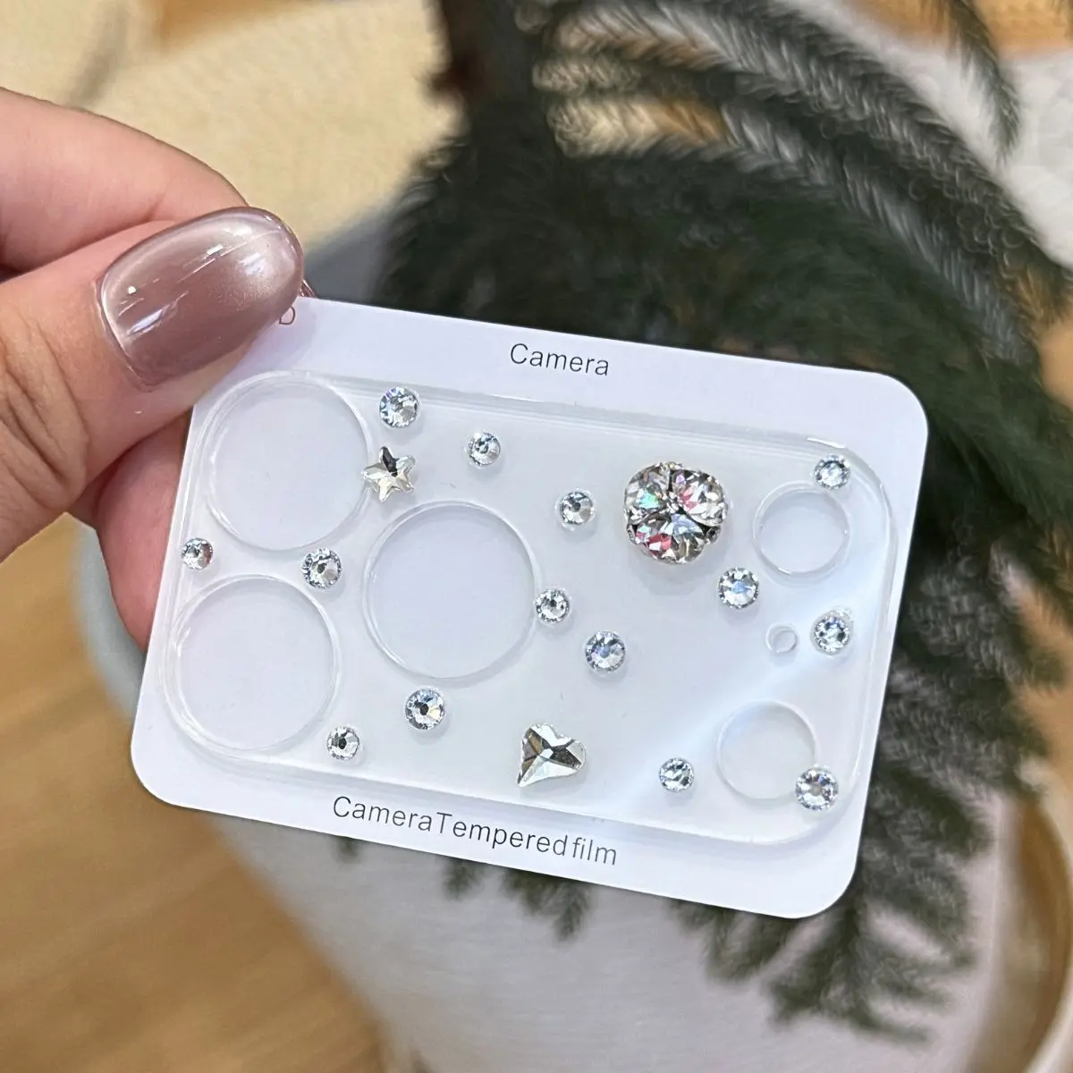 Stylish Heart Diamond Glitter Sticker For iPhone 17 Pro Max Transparent Lens Film New Apple 17 Pro Rear Camera Scratch-Resistant Soft Matte