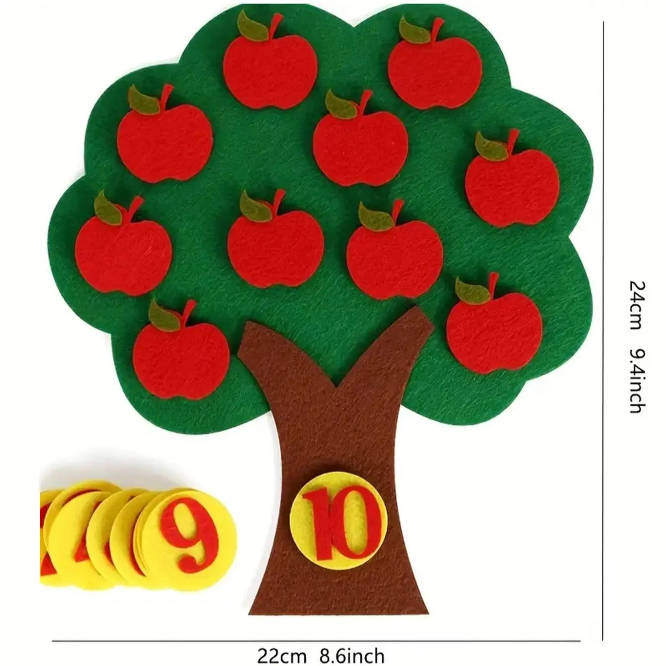 Apple Tree Learning Numbers Felt Board (1 Set), Counters Math Toy, Math Games Manipulatives, Montessori Counting Toy, Math Learning Tools