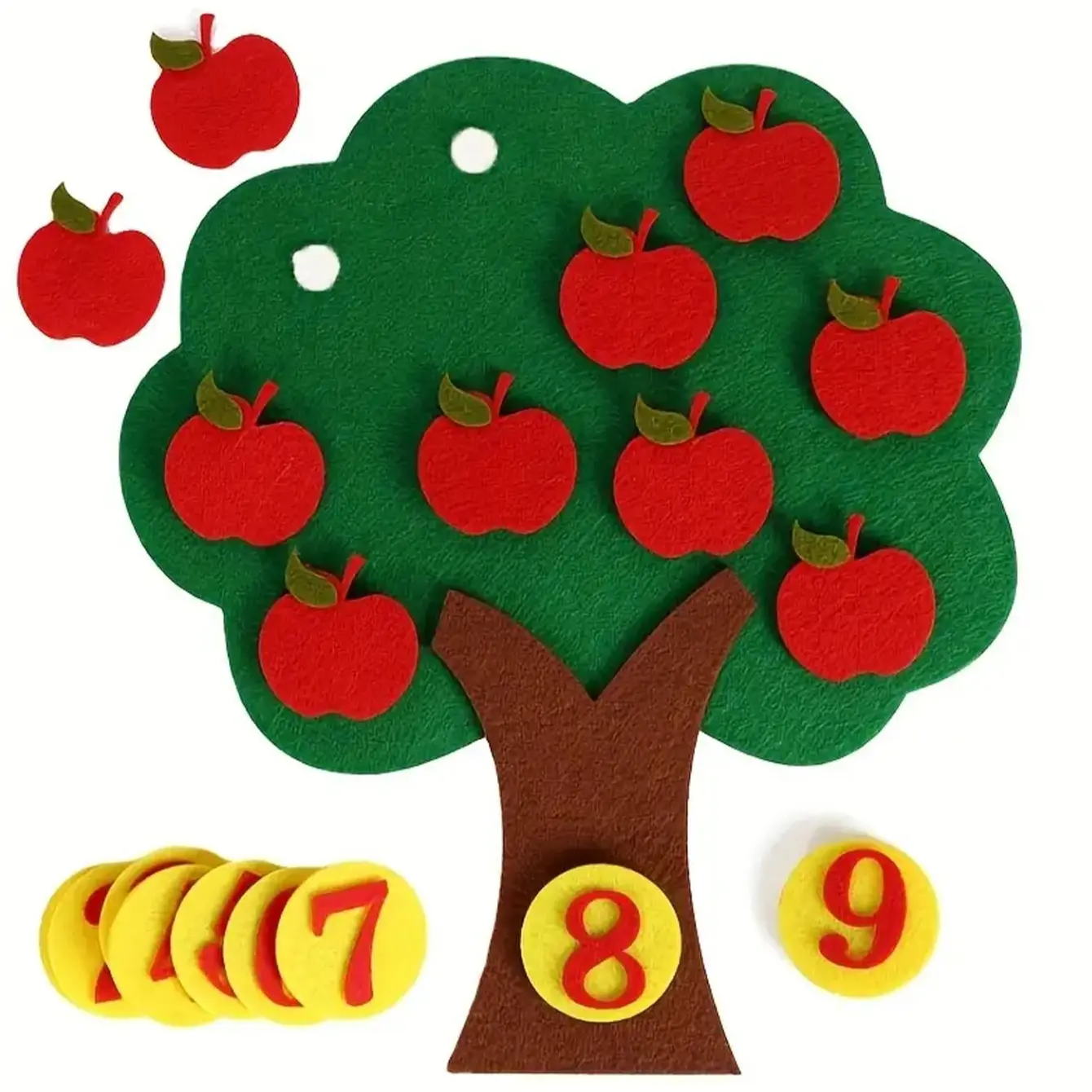 Apple Tree Learning Numbers Felt Board (1 Set), Counters Math Toy, Math Games Manipulatives, Montessori Counting Toy, Math Learning Tools, Number Counting Blocks, Learning Materials