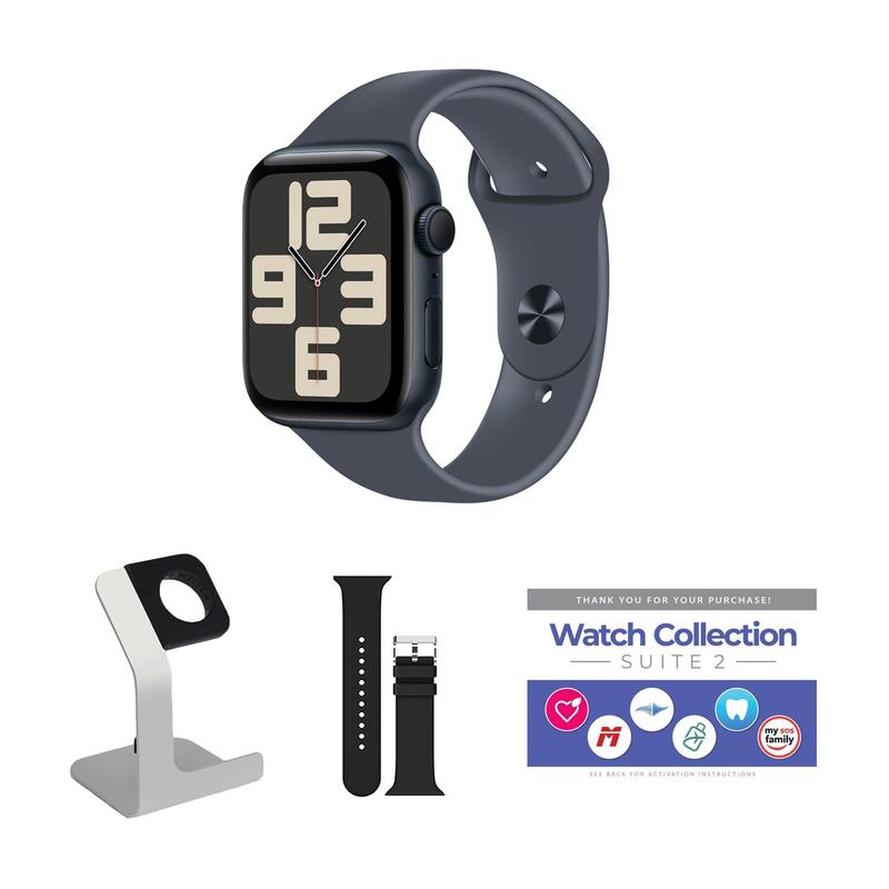 ·Includes 3rd-generation Apple Watch SE 44mm with medium/large band and magnetic charging cable; stand, silicone band, and voucher
