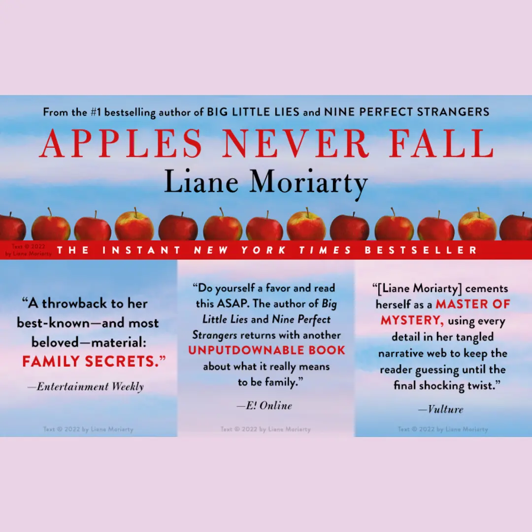 β From Liane Moriarty, the bestselling author of Big Little Lies and Nine Perfect Strangers, comes Apples Never Fall, a novel that looks at marriage, siblings, and how the people we love the most can hurt us the deepest.