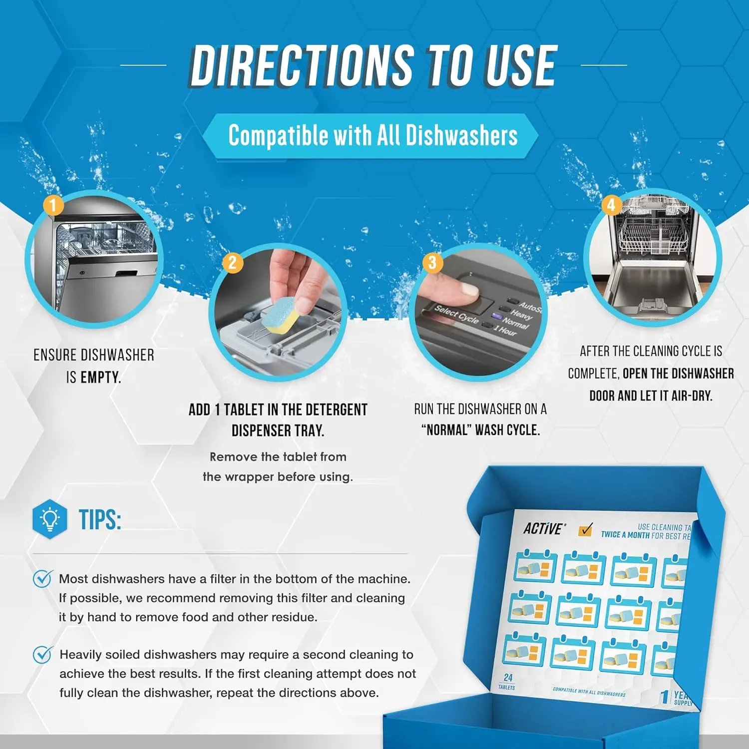 ·Monthly Maintenance Solution - Keep your Laundry and Kitchen Appliances fresh with ACTIVE cleaning supplies. Use based on package instructions with a self cleaning or regular cycle to restore your machines