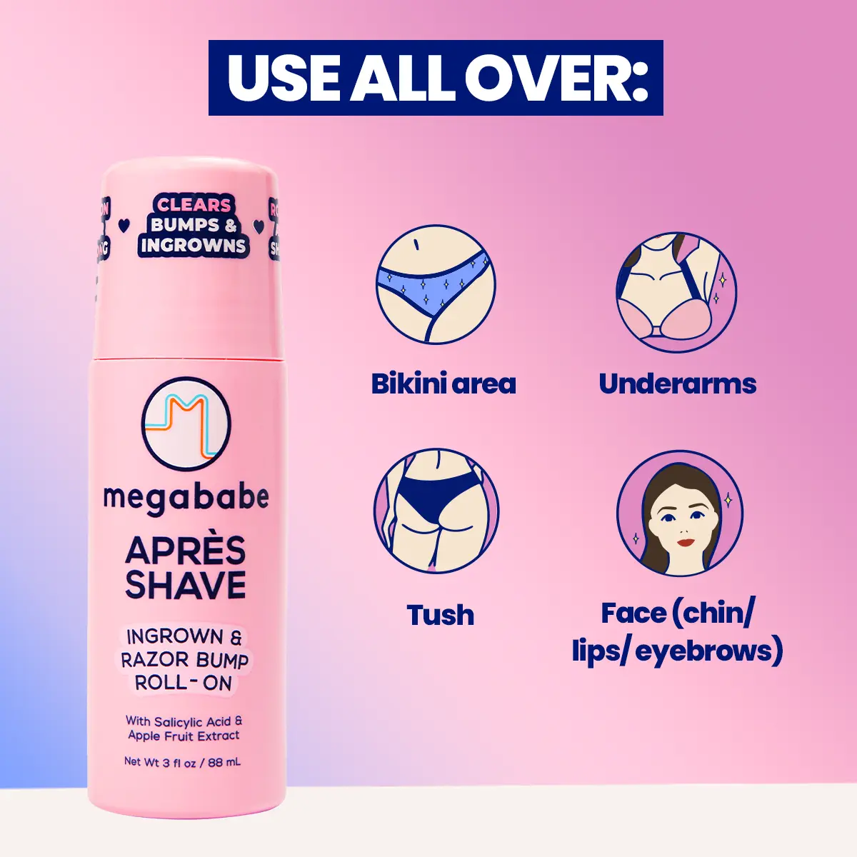 Best of all, the convenient roll-on applicator keeps fingers clean and makes fighting ingrowns and bumps not only easy, but dare we say… enjoyable!
