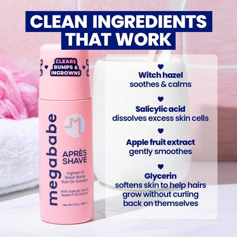 Made with apple fruit extract, witch hazel and beta hydroxy acid (BHA), Après Shave gets to the root of the problem, eliminating dead skin cells that clog pores and trap hairs. The result is noticeably clearer, smoother skin whether you shave, wax, epilate, etc.