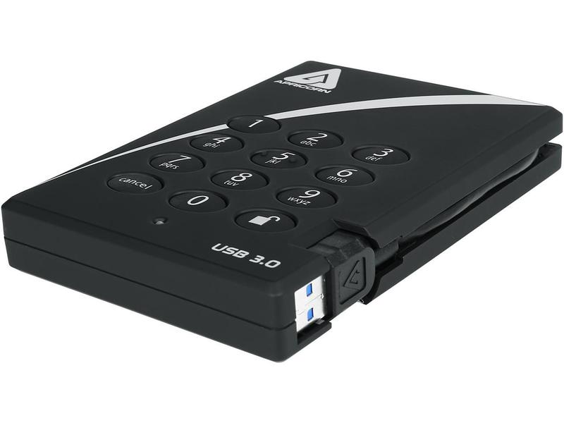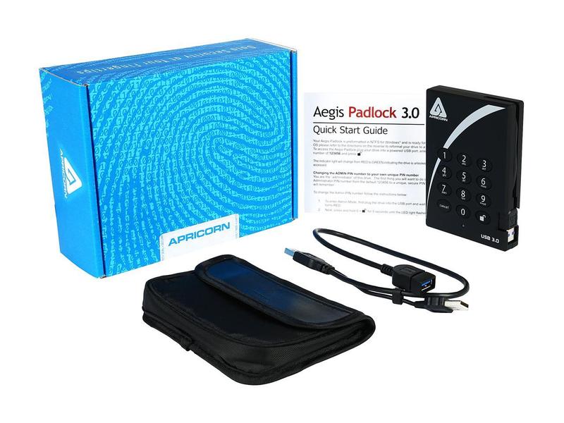 APRICORN 2TB Aegis Padlock Portable Hard Drive USB 3.0 Model A25-3PL256-2000 Black