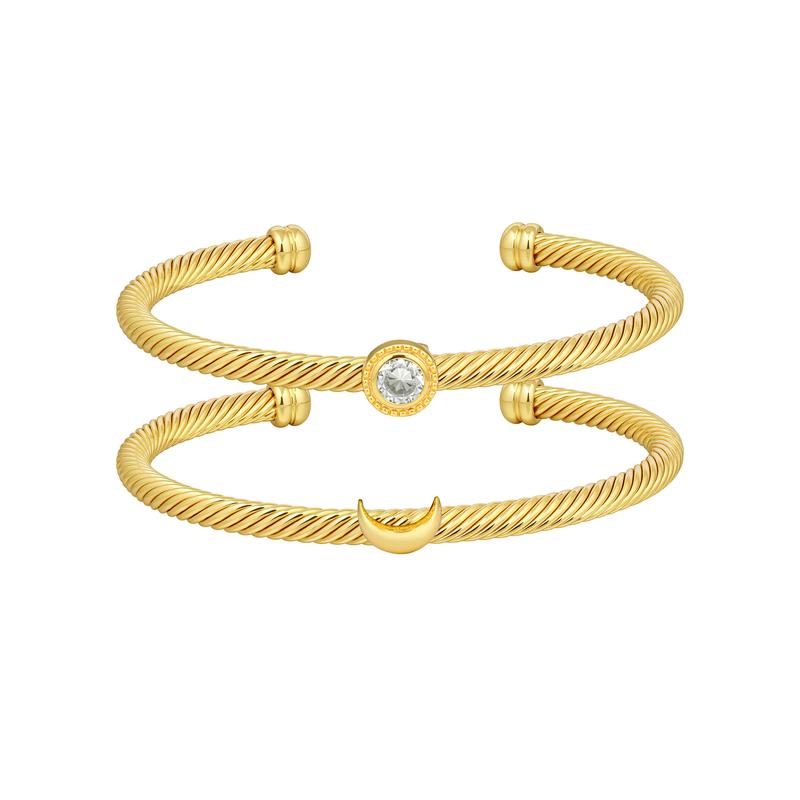 The Aprilery Celestial Sun & Moon Cuff Bracelet fuses cosmic charm with everyday elegance. Made of radiant gold, it showcases delicate sun and moon motifs—symbols of balance, eternal companionship, and life’s steady rhythm. The twisted cable texture adds subtle depth, making it easy to pair with casual or dressy looks. Thoughtfully packaged, it’s a meaningful gift or a timeless addition to your jewelry stash.
