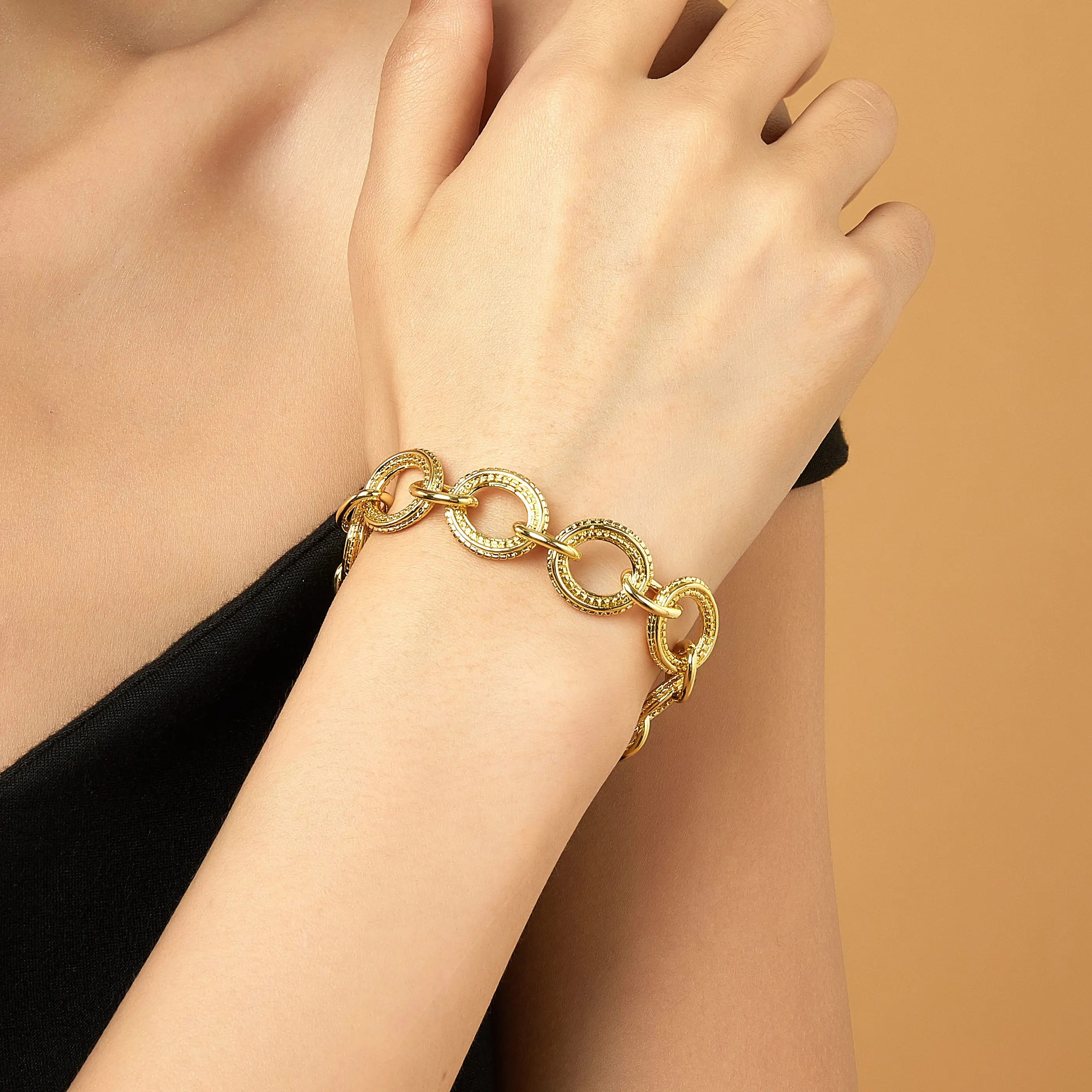 ·Lustrous Golden Tone: Exudes warmth and sophistication, complementing casual, work, and evening outfits.