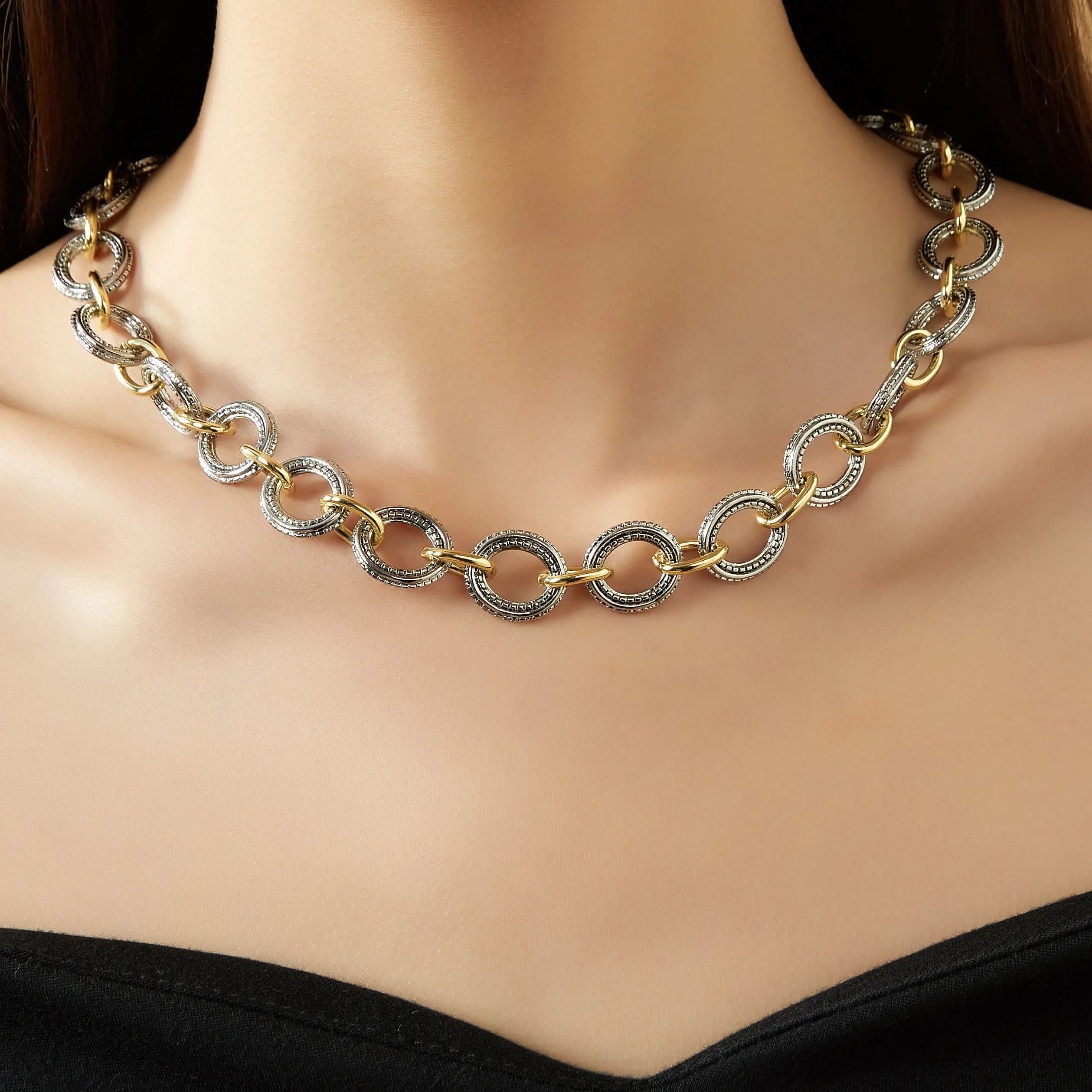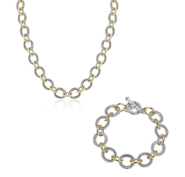 Aprilery Two-Tone Textured Chain Jewelry Set – Classic Link Necklace and Bracelet for WomenAprilery Two-Tone Textured Chain Jewelry Set – Classic Link Necklace and Bracelet for WomenAprilery Two-Tone Textured Chain Jewelry Set – Classic Link Necklace and Bracelet for WomenAprilery Two-Tone Textured Chain Jewelry Set – Classic Link Necklace and Bracelet for Women