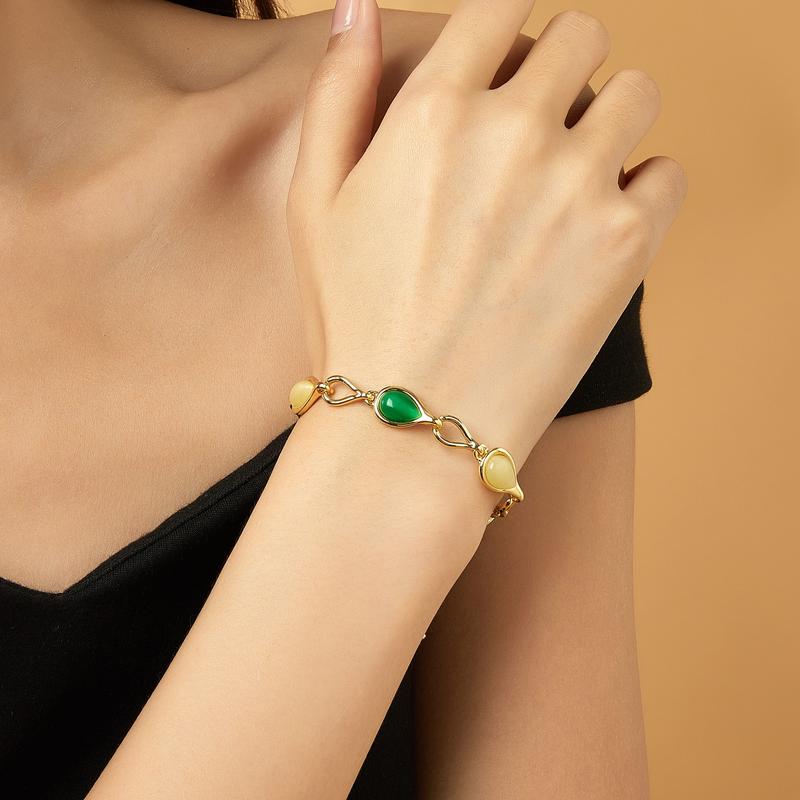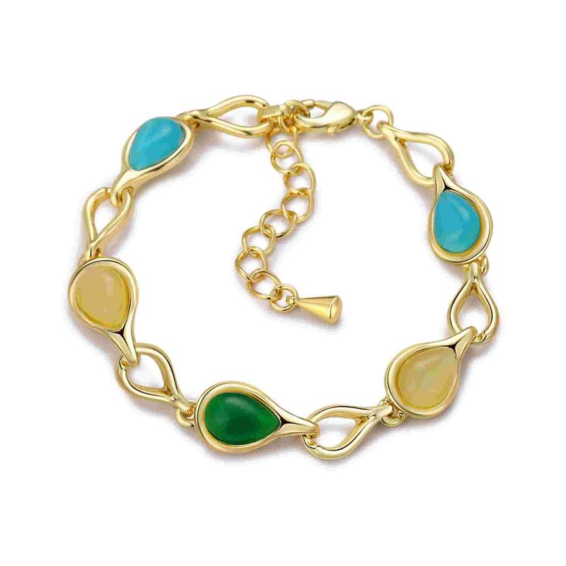 Add a splash of color and sophistication to your collection with the Aprilery Waterdrop-Shaped Link Bracelet. Featuring an elegant design with a vibrant trio of gemstones—blue, green, and yellow—this bracelet embodies timeless beauty and a touch of playful elegance.
