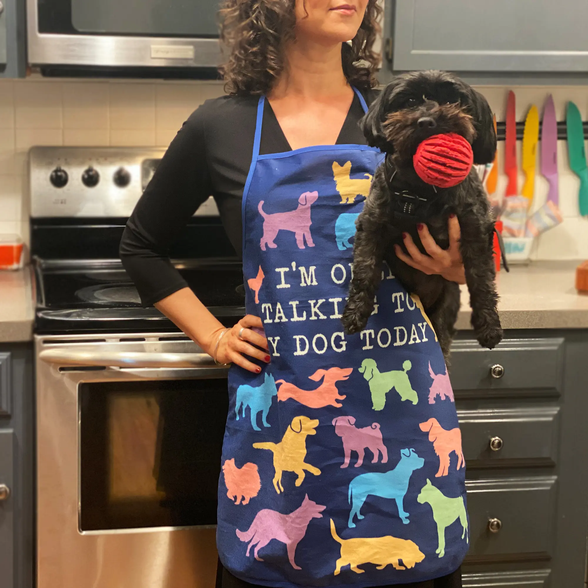 Show off your love for your furbaby with a hilarious apron and oven mitt set from Crazy Dog T-Shirts