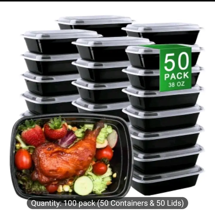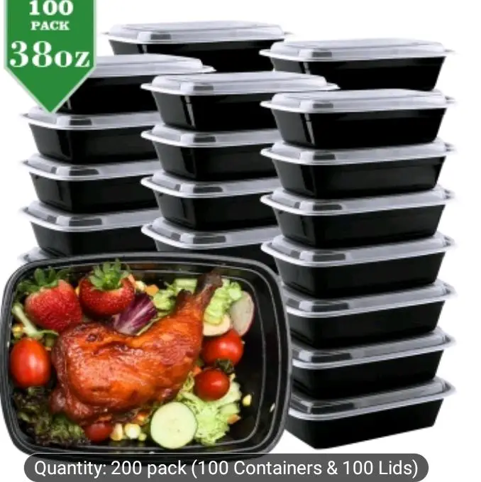 Apsic offers 100pcs/200pcs Black 38oz Rectangular Stackable Meal Prep Containers. These leakproof food storage containers are perfect for takeout and meal prep. The set includes disposable bento boxes, ideal for various storage needs. Dishwasher, freezer, and microwave safe, these containers ensure convenience and versatility.
