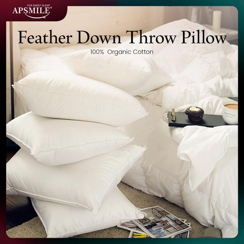 APSMILE 100% Organic Cotton Feather Down Throw Pillow Inserts Soft Decorative Square Pillows Insert