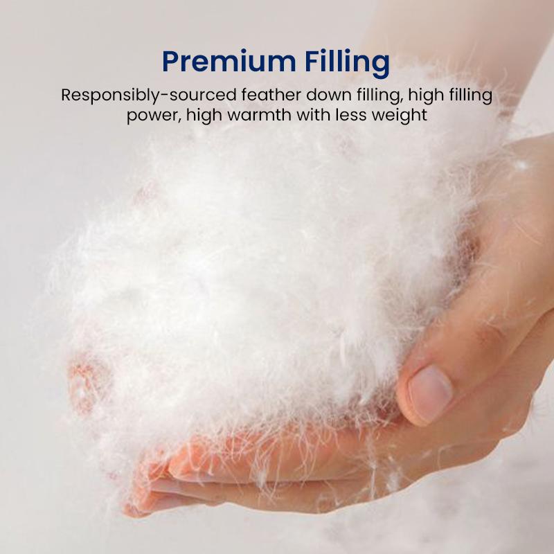 I love love love this feather down duvet blanket it’s so soft reminds of the one my mom had growing up but softer feels like butter I will be purchasing two more in the near future on a flash sale for my other daughters with the weather changing this is perfection!