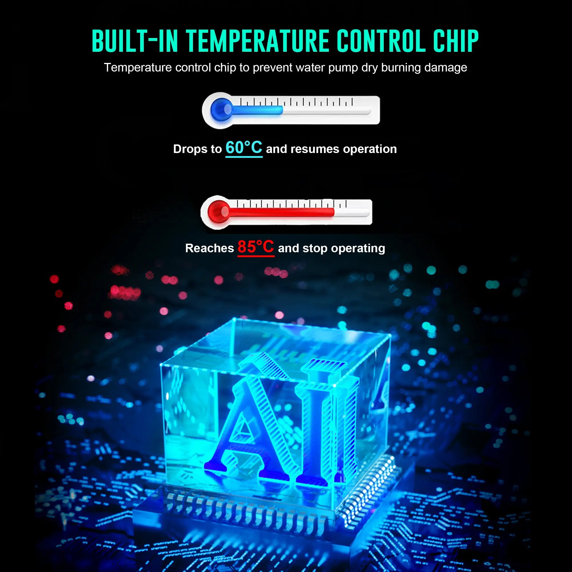 ·Temperature Control: Built-in temperature control chip prevents dry running, and the pump resumes operation when the unit cools to 60°C.