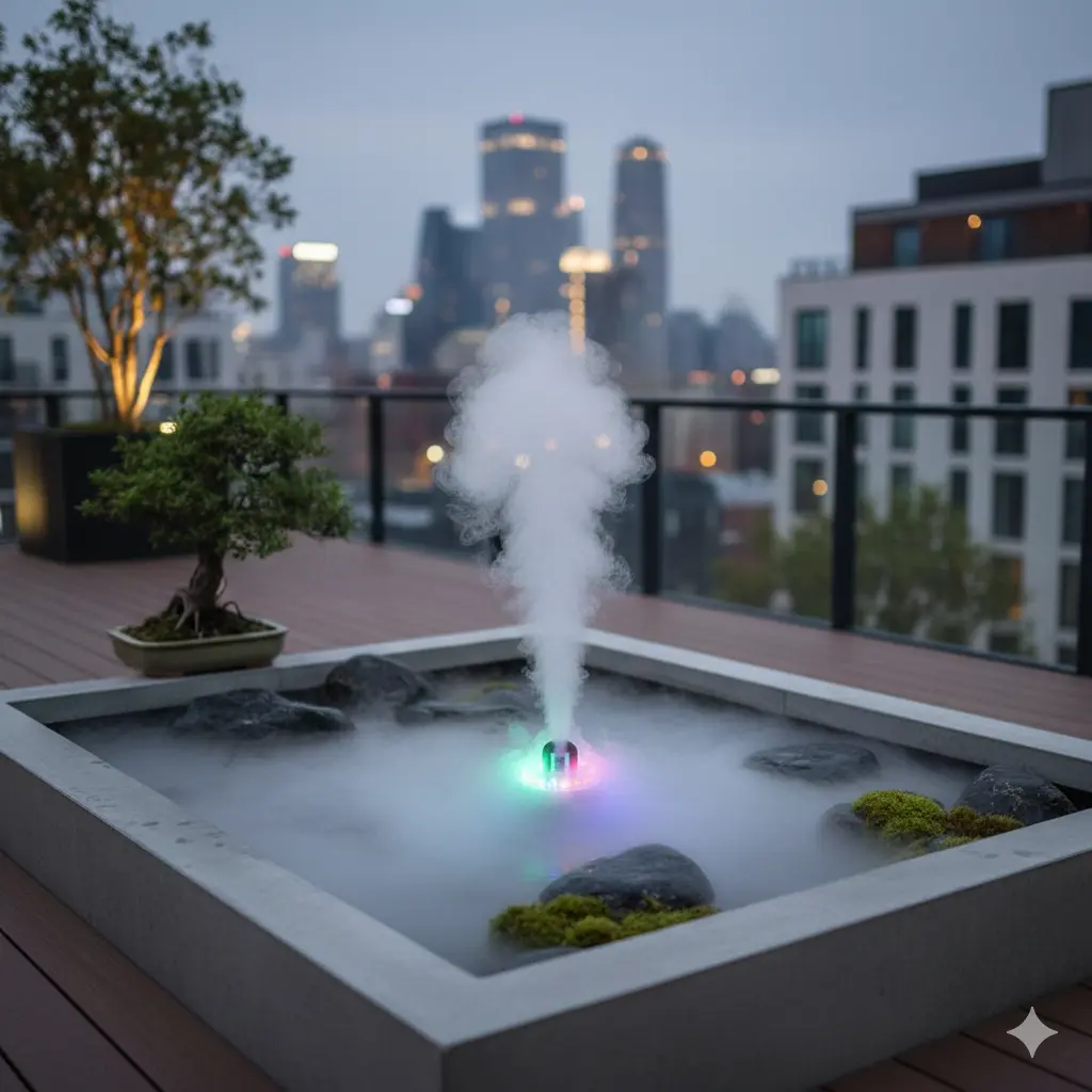 Elevate your home or garden with our 12 LED Zinc Mist Maker. Using advanced ultrasonic technology, this fogger creates a thick, magical mist without the use of heat or harsh chemicals. It’s the perfect tool to add a "cloud forest" vibe to your rockery, water tank, indoor vase, or birdbath.