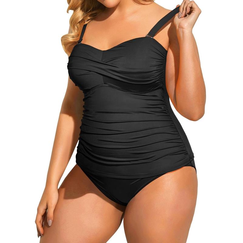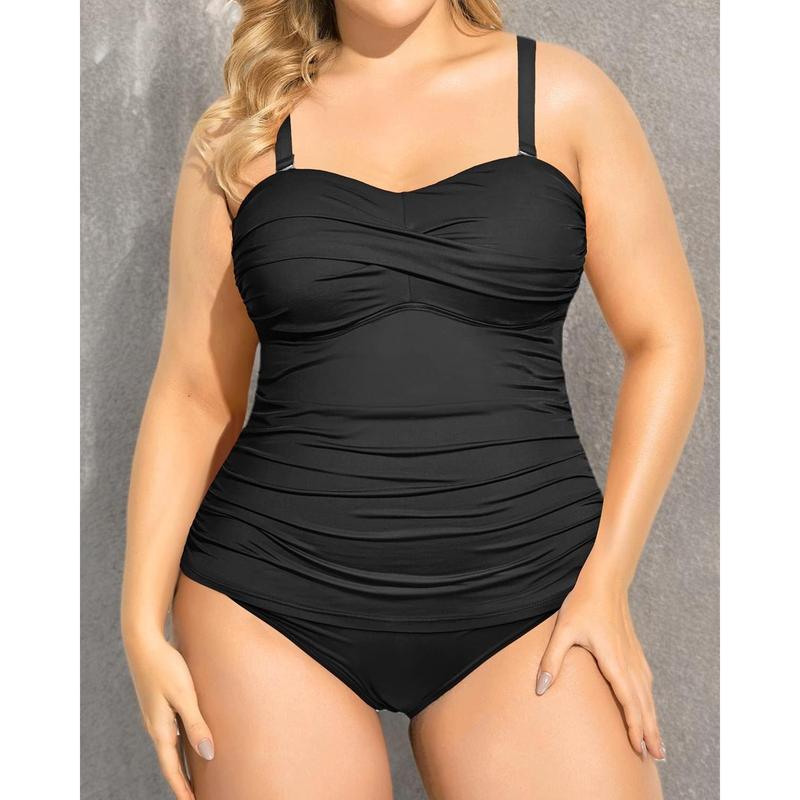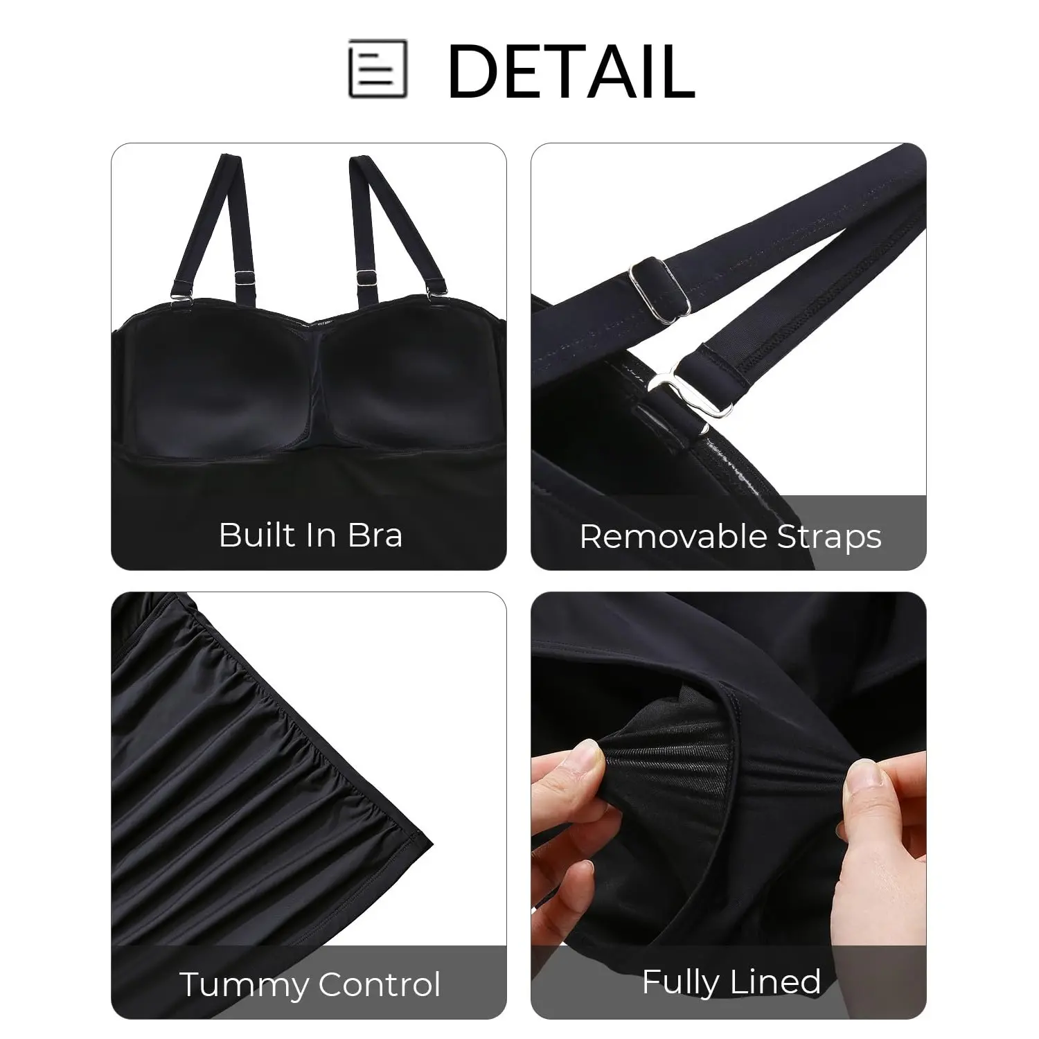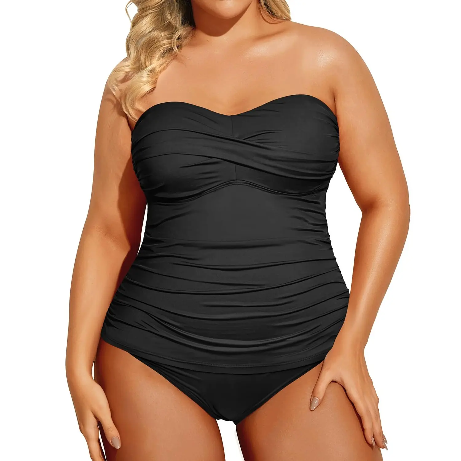 ·Plus size strapless swimsuits: Bandeau tankini swimsuit has removable and adjustable shoulder straps so it can be wore as classic straight straps, cross-back straps or strapless tankini top.