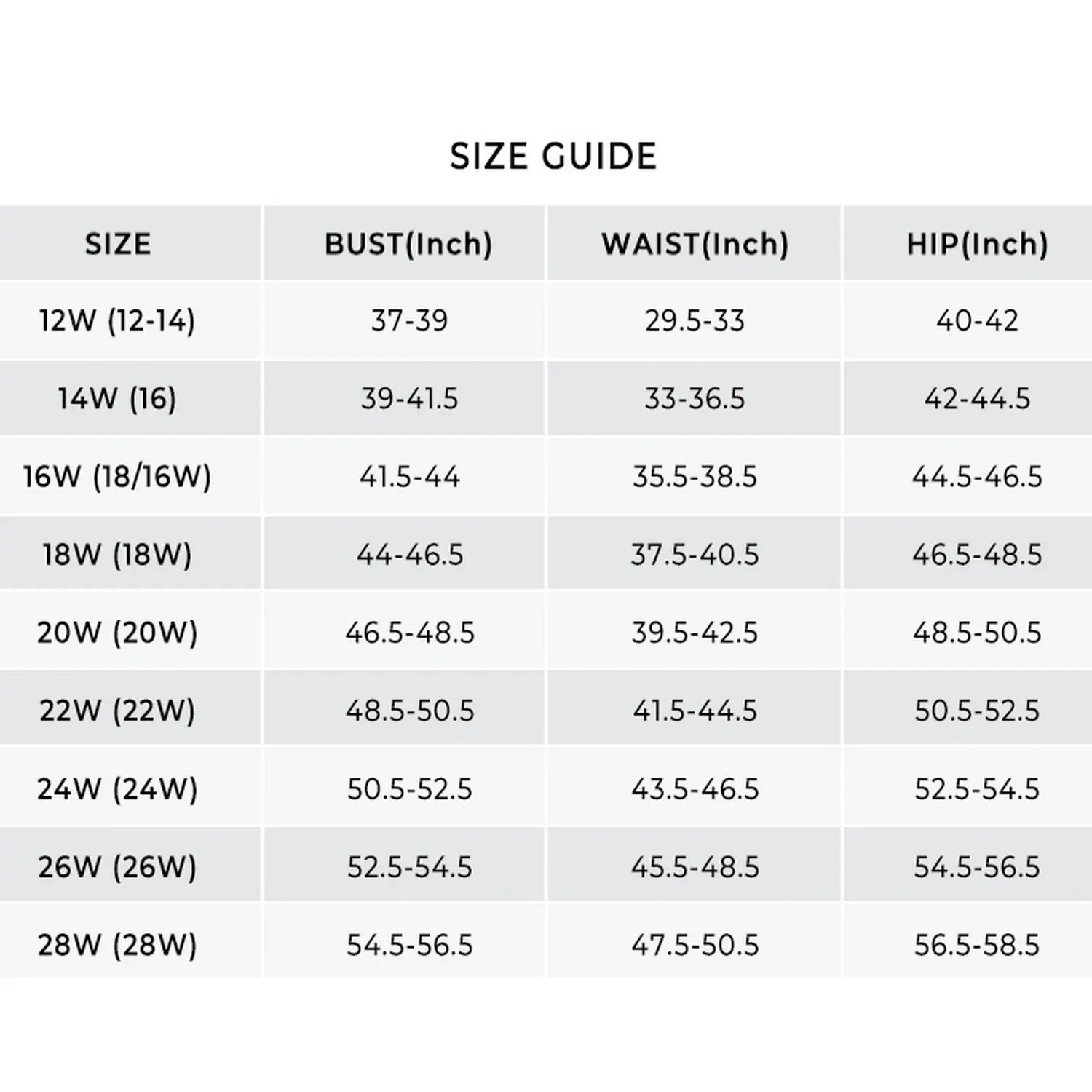 ·Available in a variety of US sizes: 12 Plus(US 12W), 14 Plus(US 14W), 16 Plus(US 16W),18 Plus(US 18W), 20 Plus(US 20W), 22 Plus(US 22W), 24 Plus(US 24W). Please refer to the Size Chart before purchasing and feel free to contact us at any time.