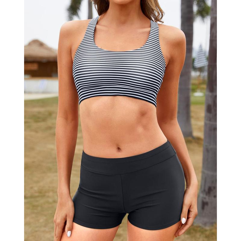 ·Three-Piece Tankini: The shorts provide full coverage, the sports bra is supportive, and you can choose to wear it with or without the cute swim tank top.