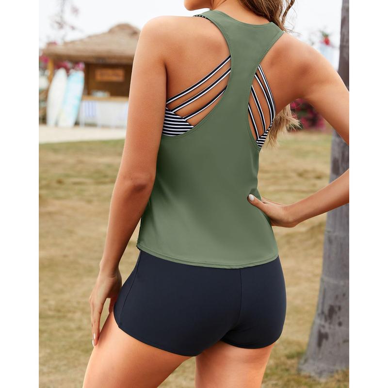 ·Athletic Style: The U-neck tankini top is loose enough to conceal your tummy. Its special open-back design perfectly showcases your curves.