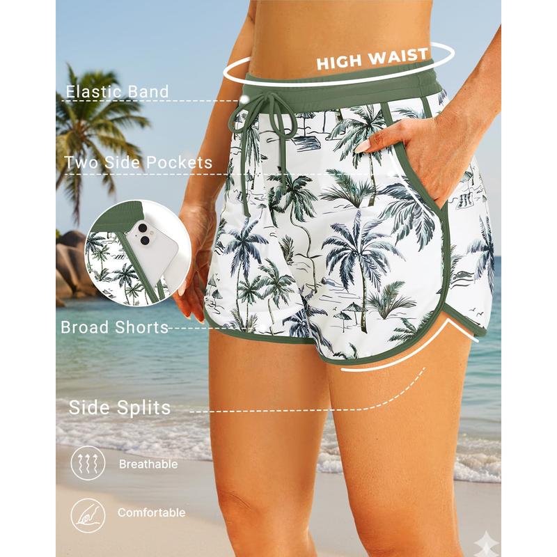 ·Tankini with shorts: High-waist swim shorts with adjustable tie drawstring and binding trim offer tummy control and full coverage.